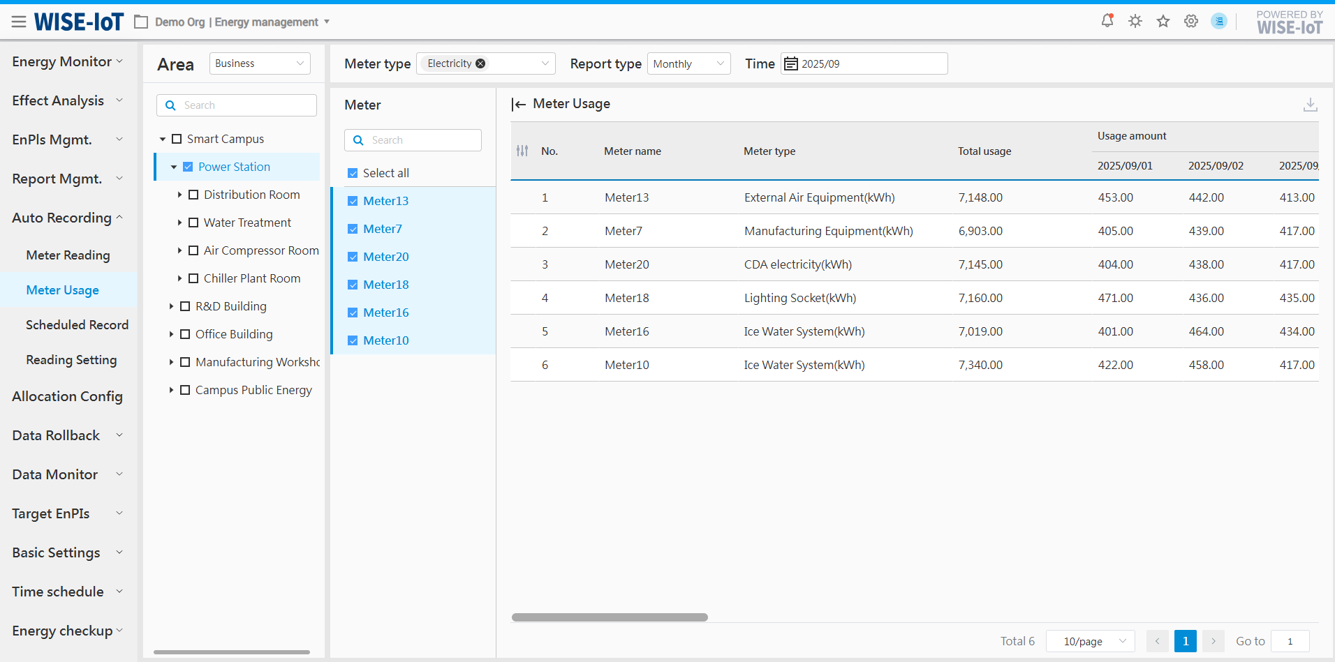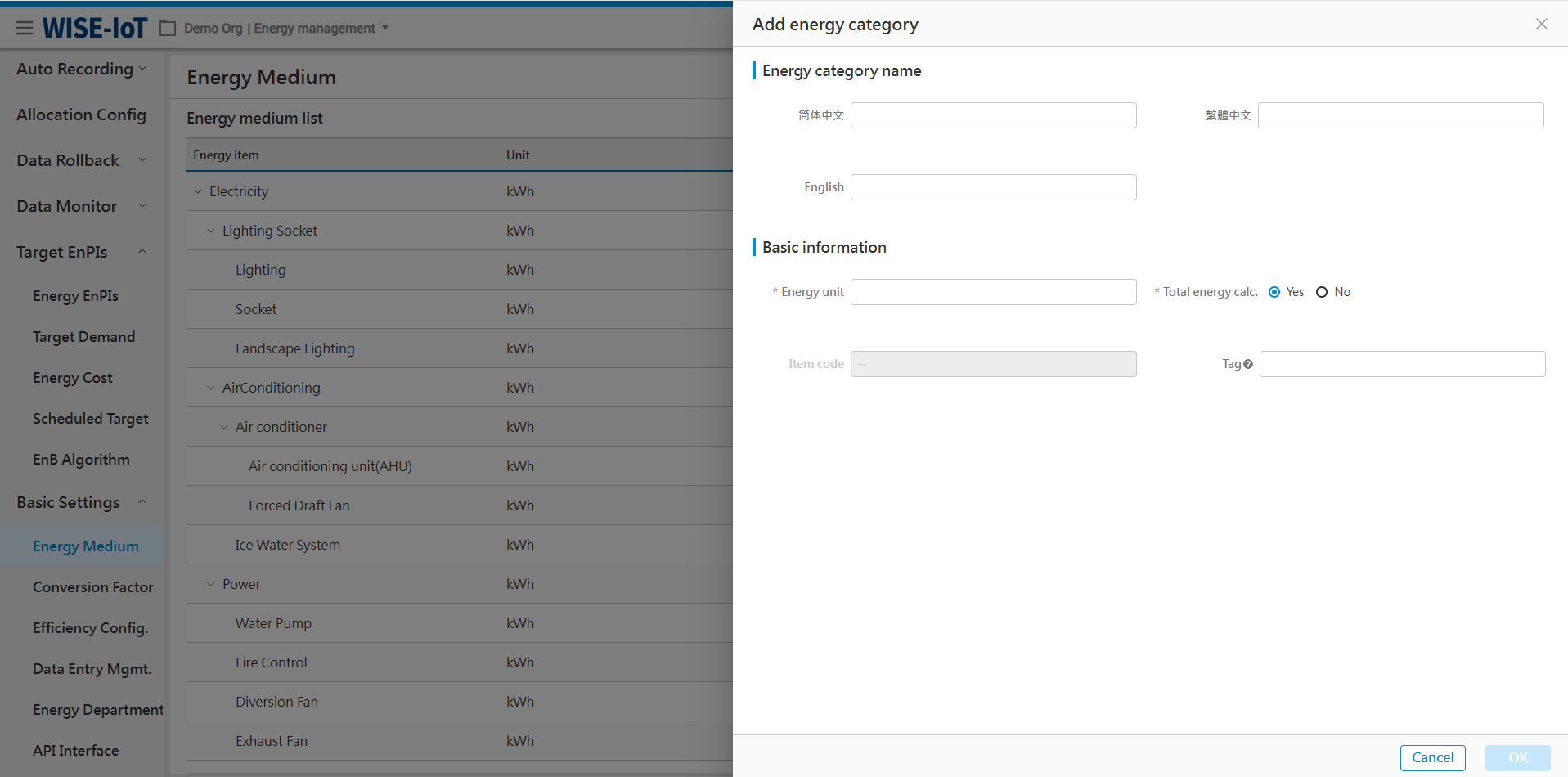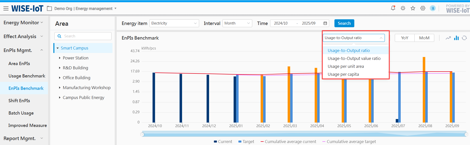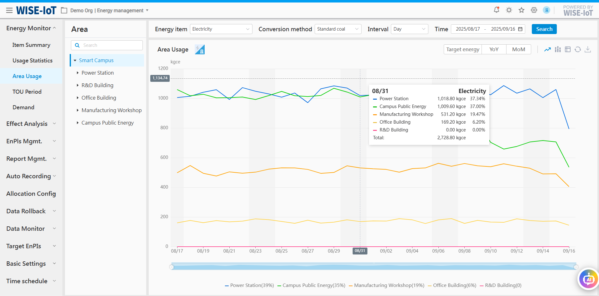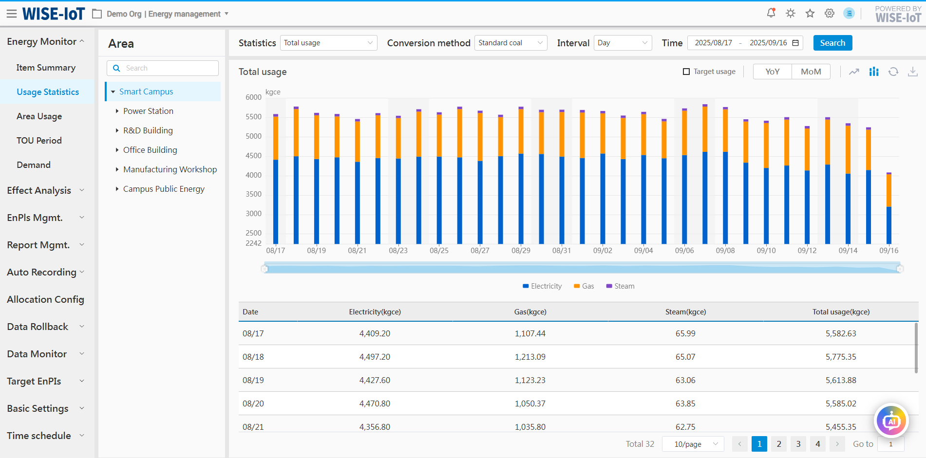 (1) Enable switching of statistical data for comprehensive energy usage and various energy types;