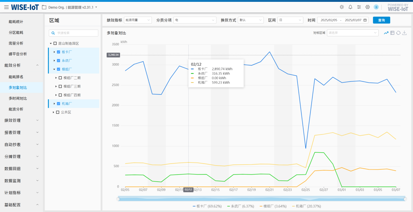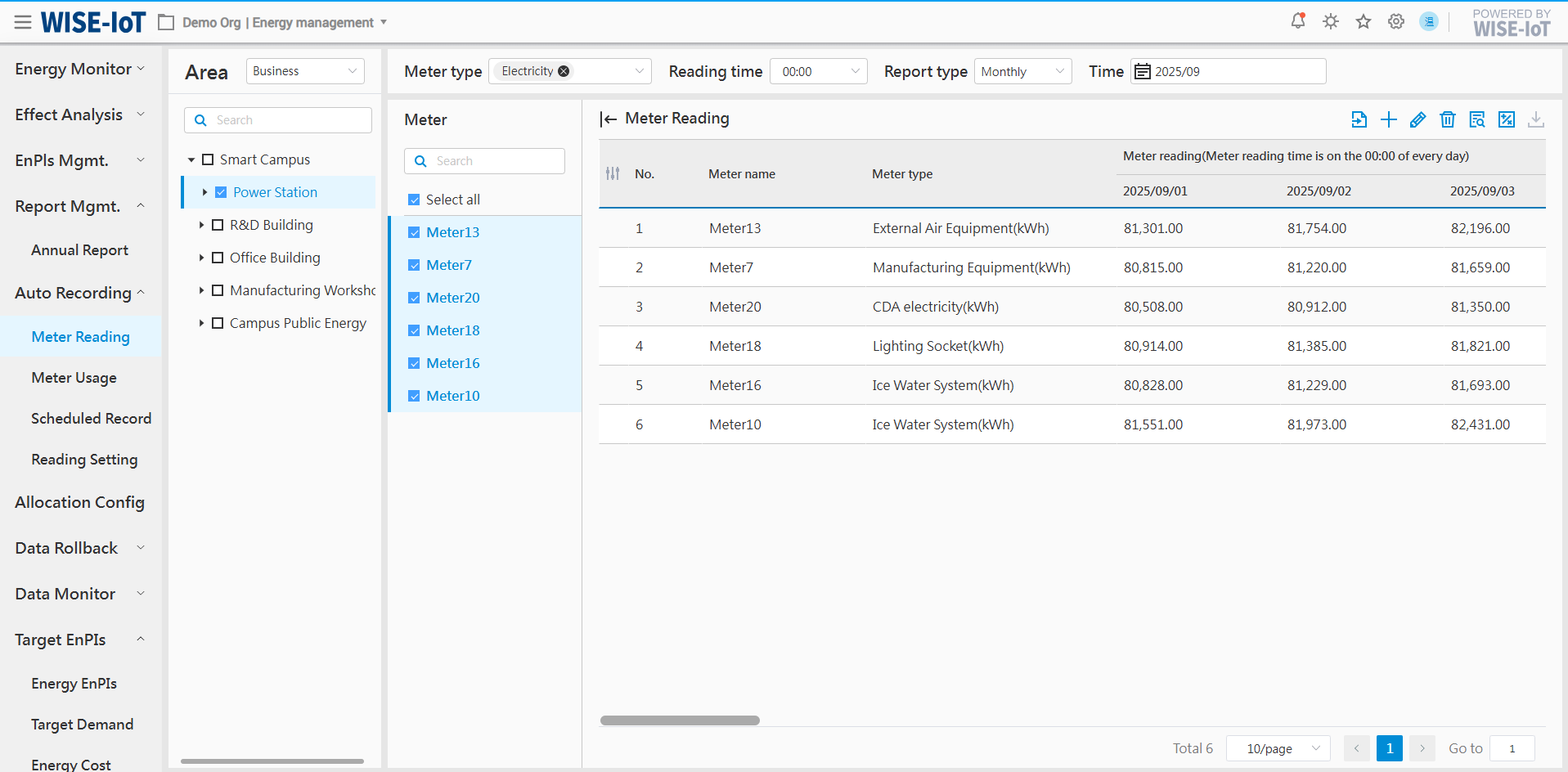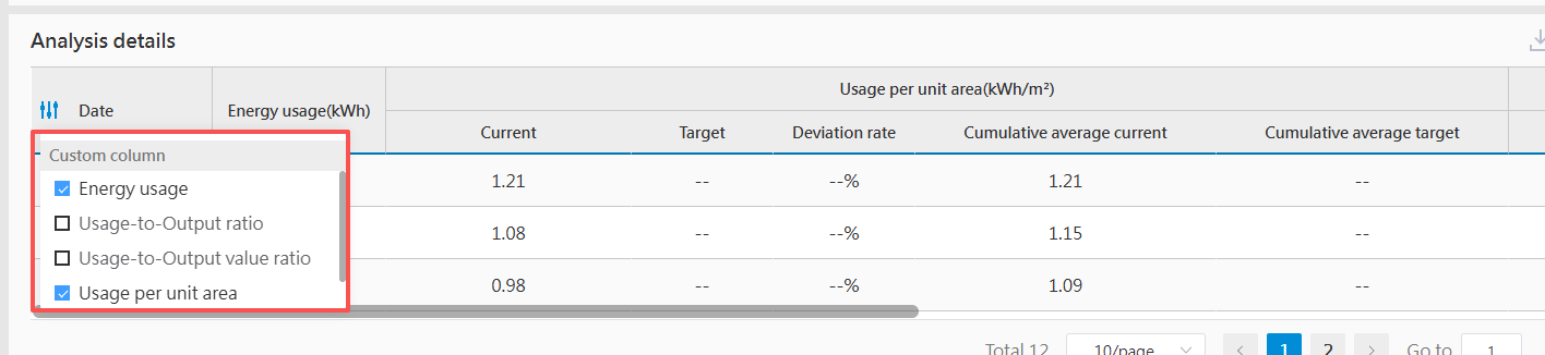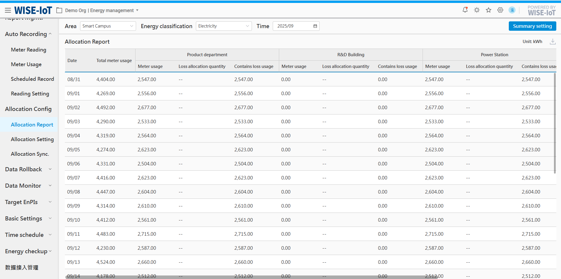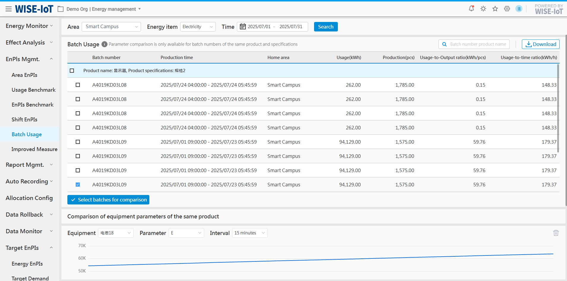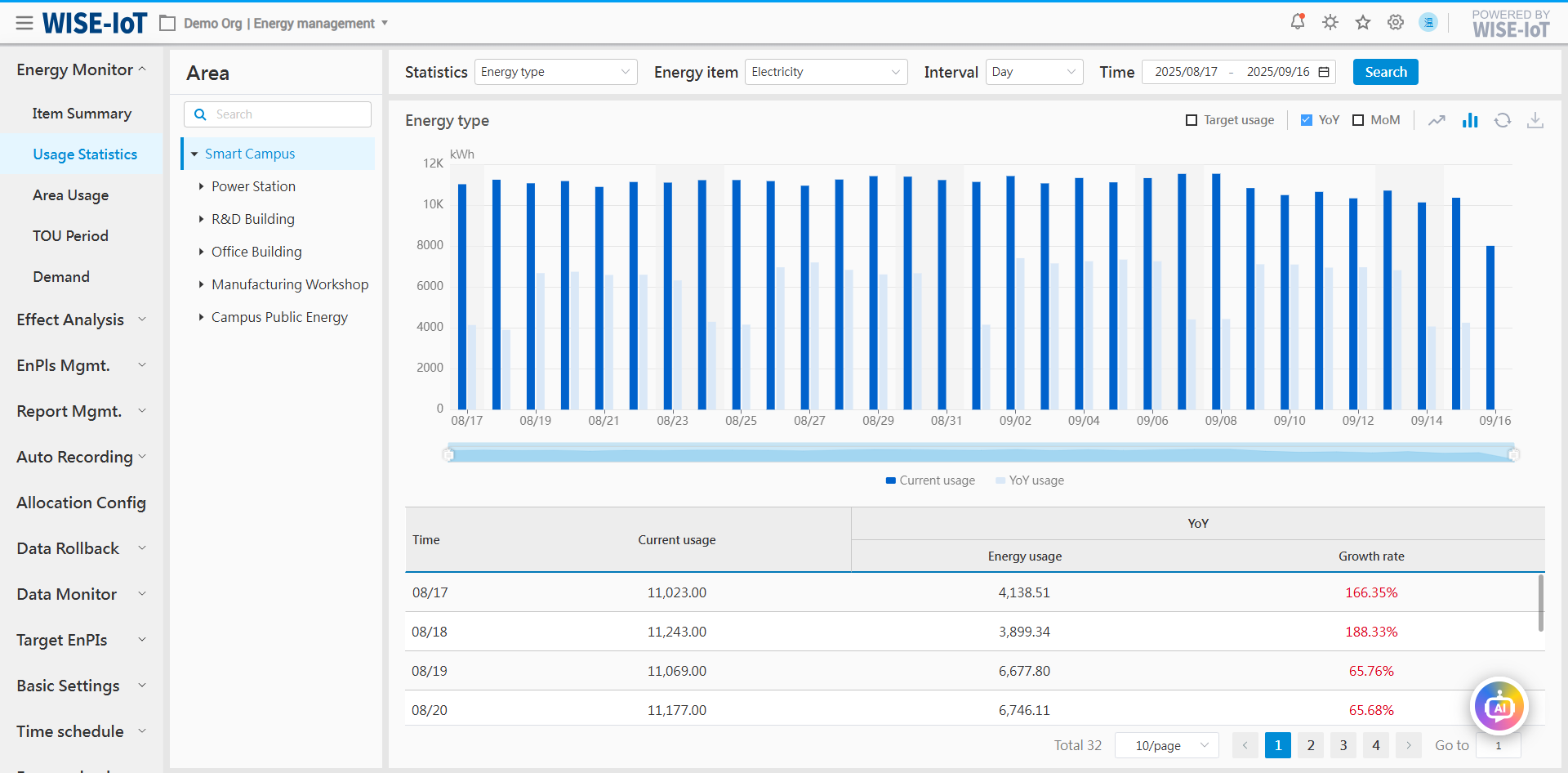 (1) Enable switching of statistical data for comprehensive energy usage and various energy types;
