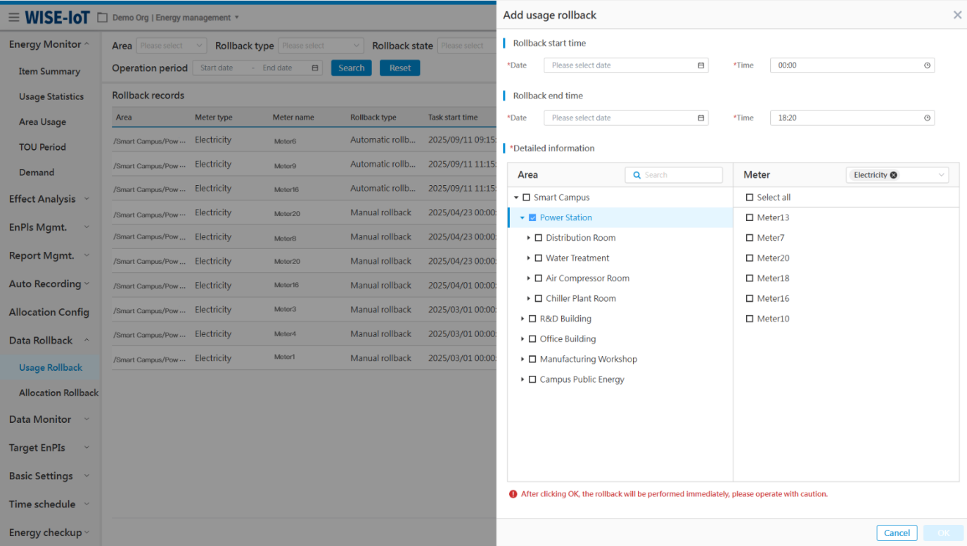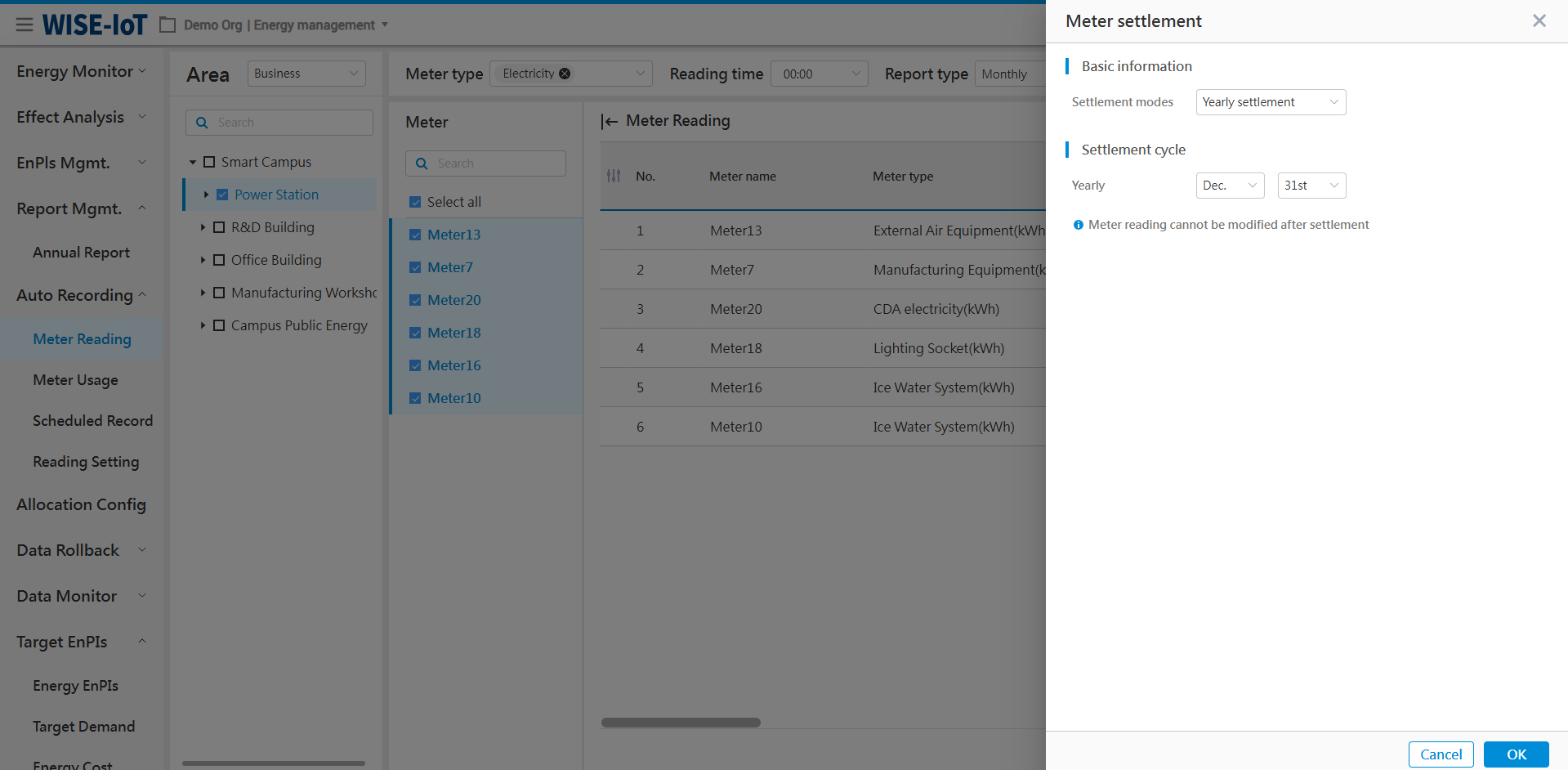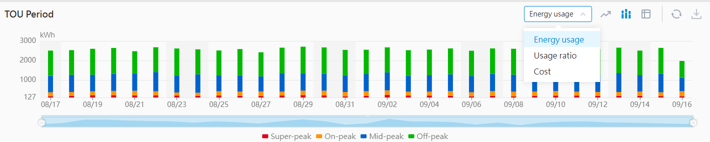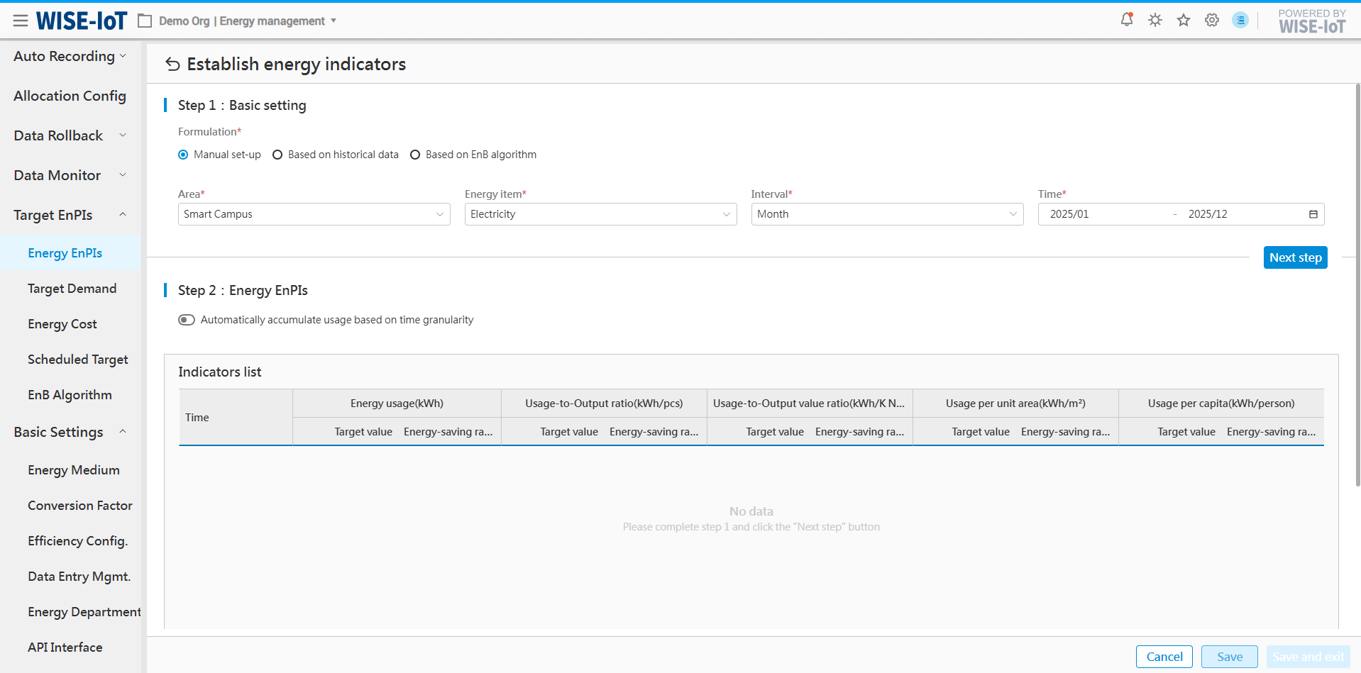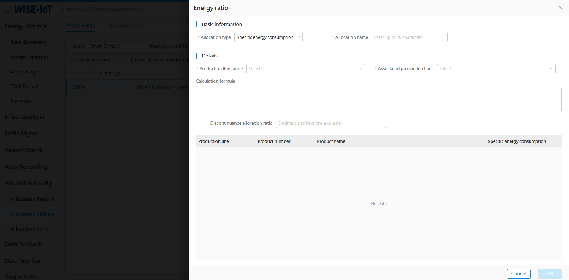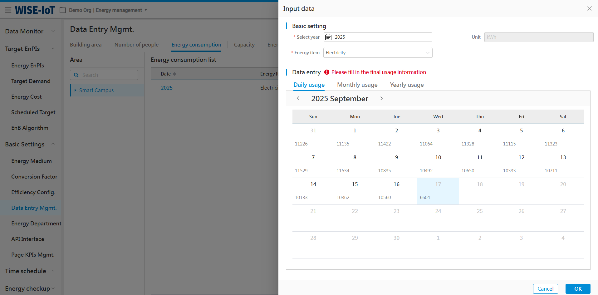 (1) Enable switching of statistical data for comprehensive energy usage and various energy types;