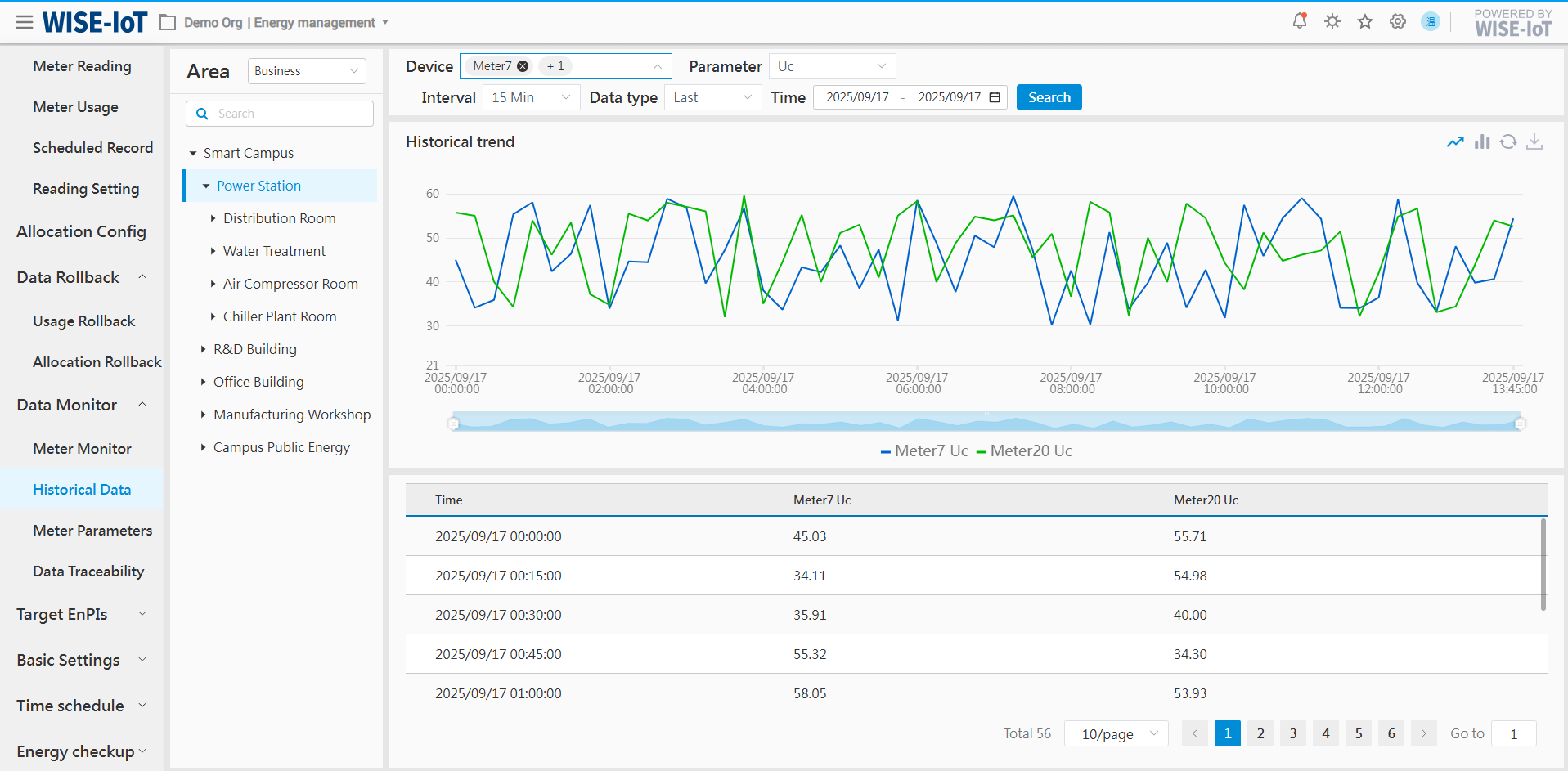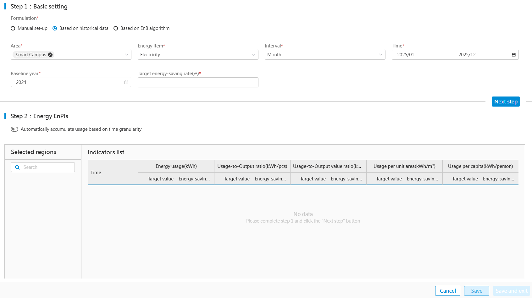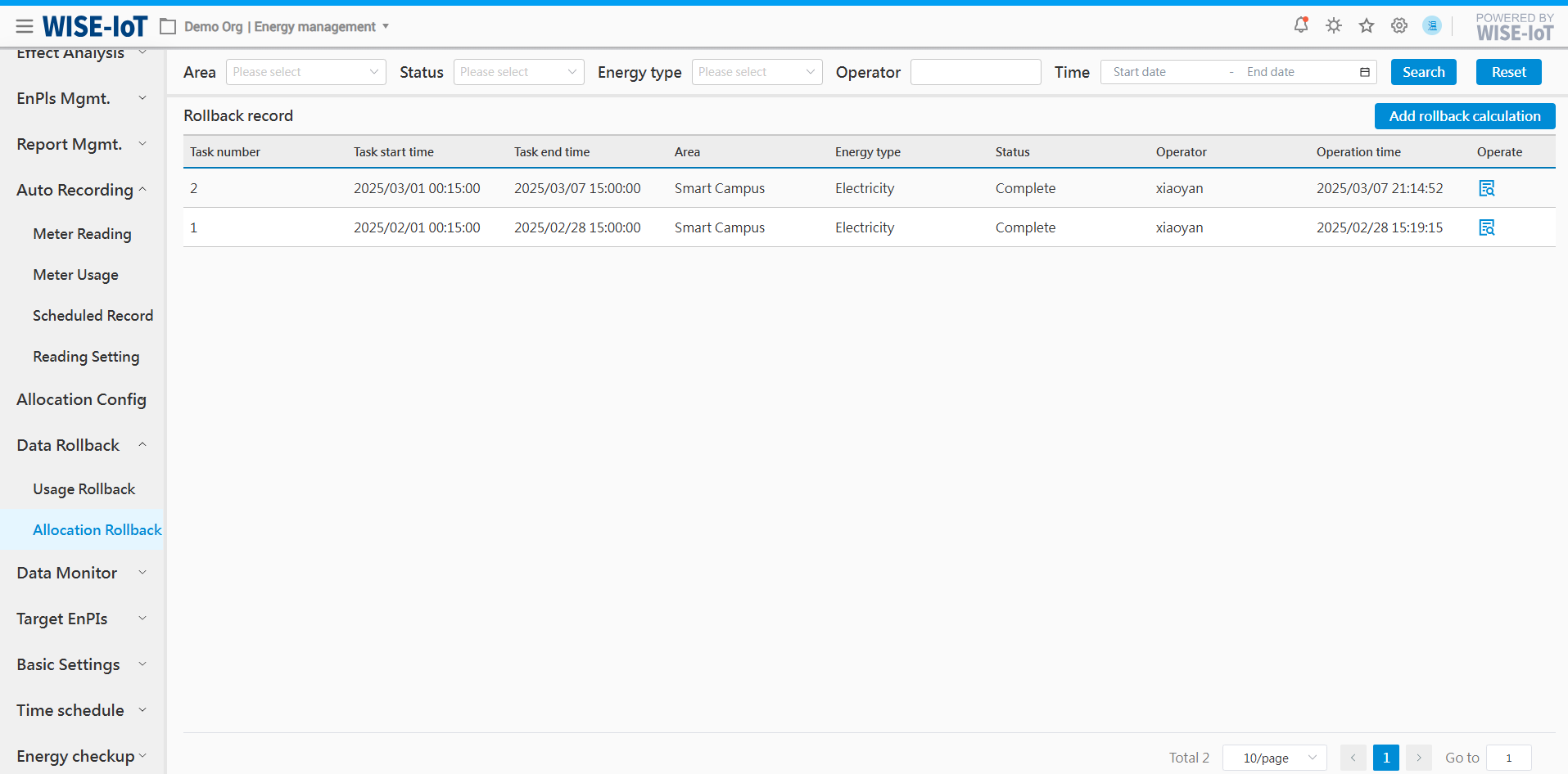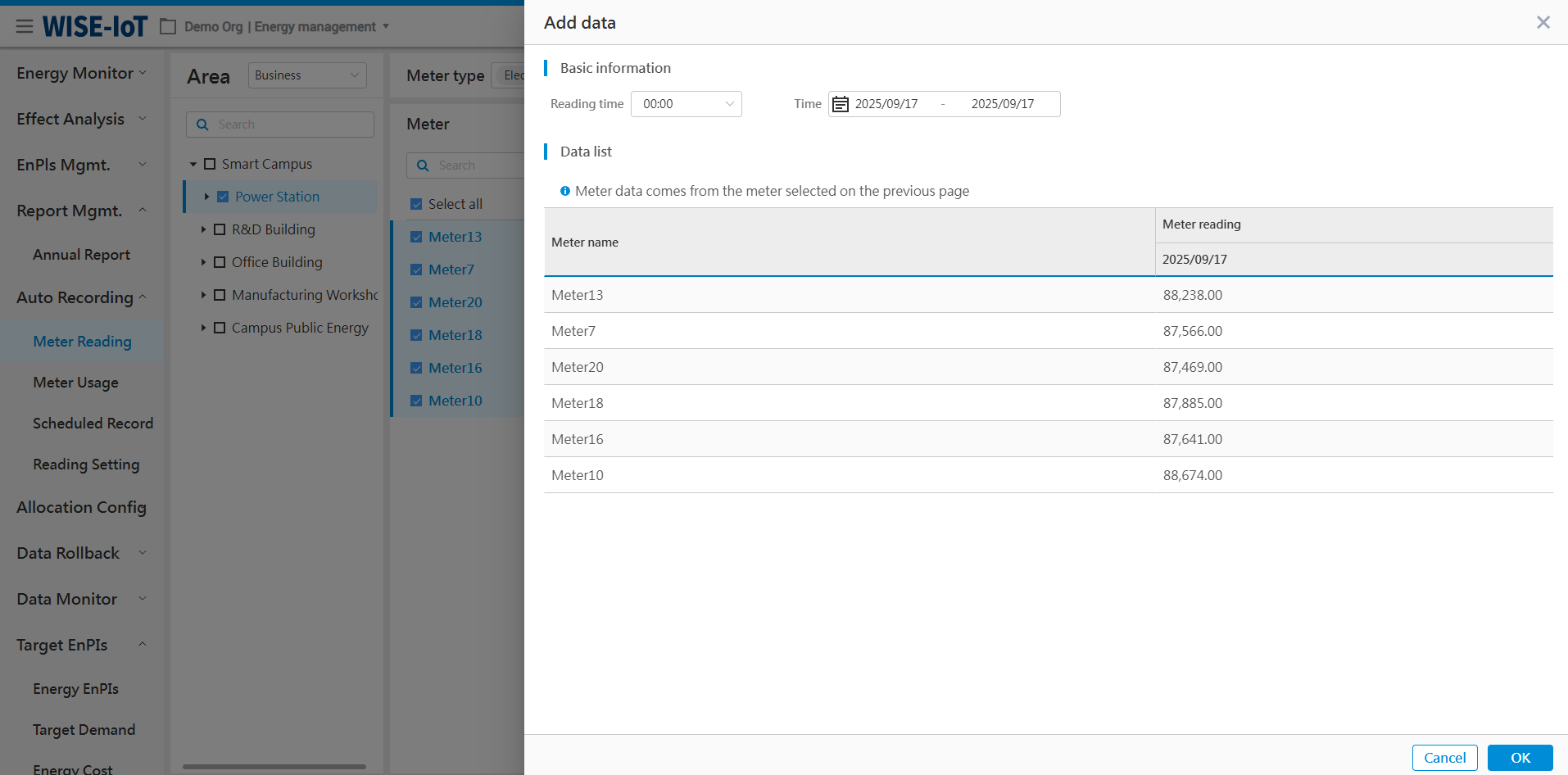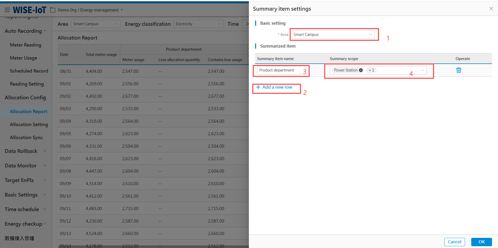 (1) Enable switching of statistical data for comprehensive energy usage and various energy types;