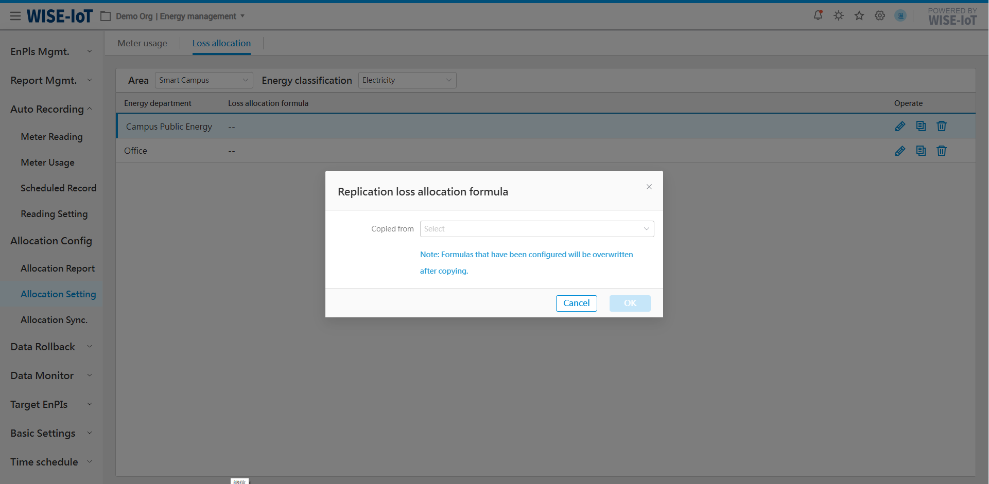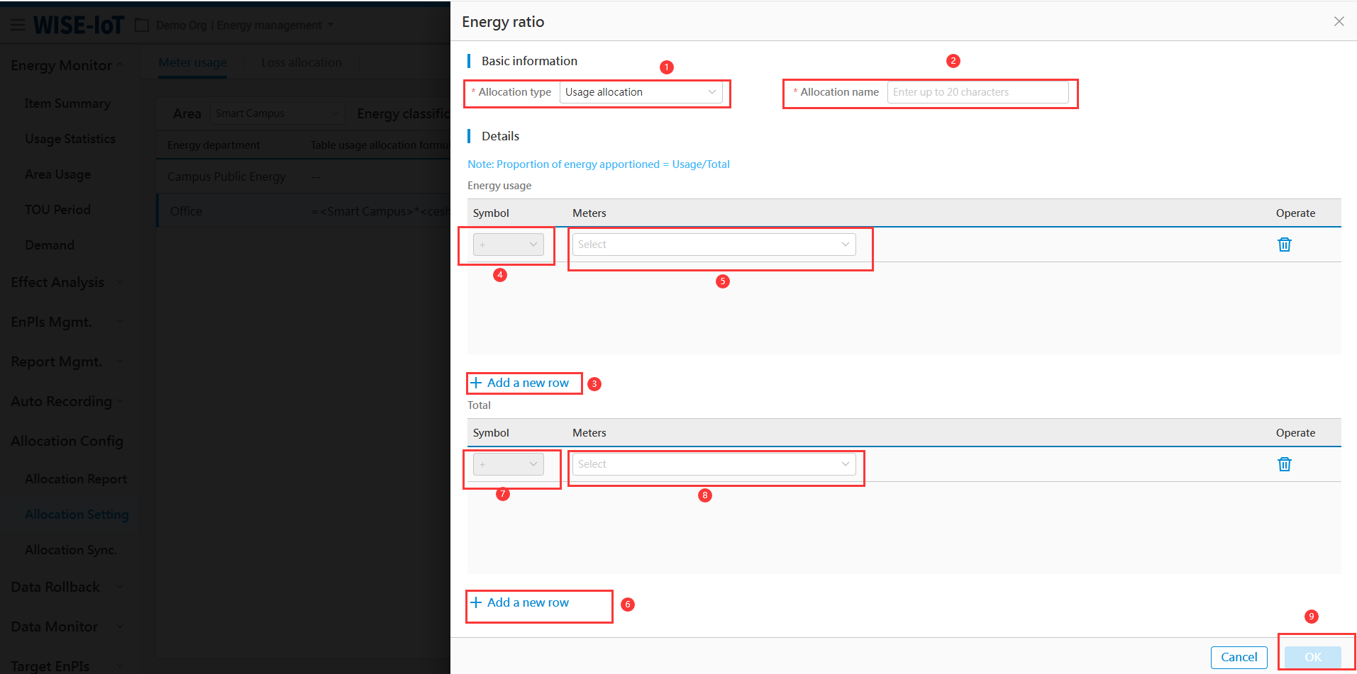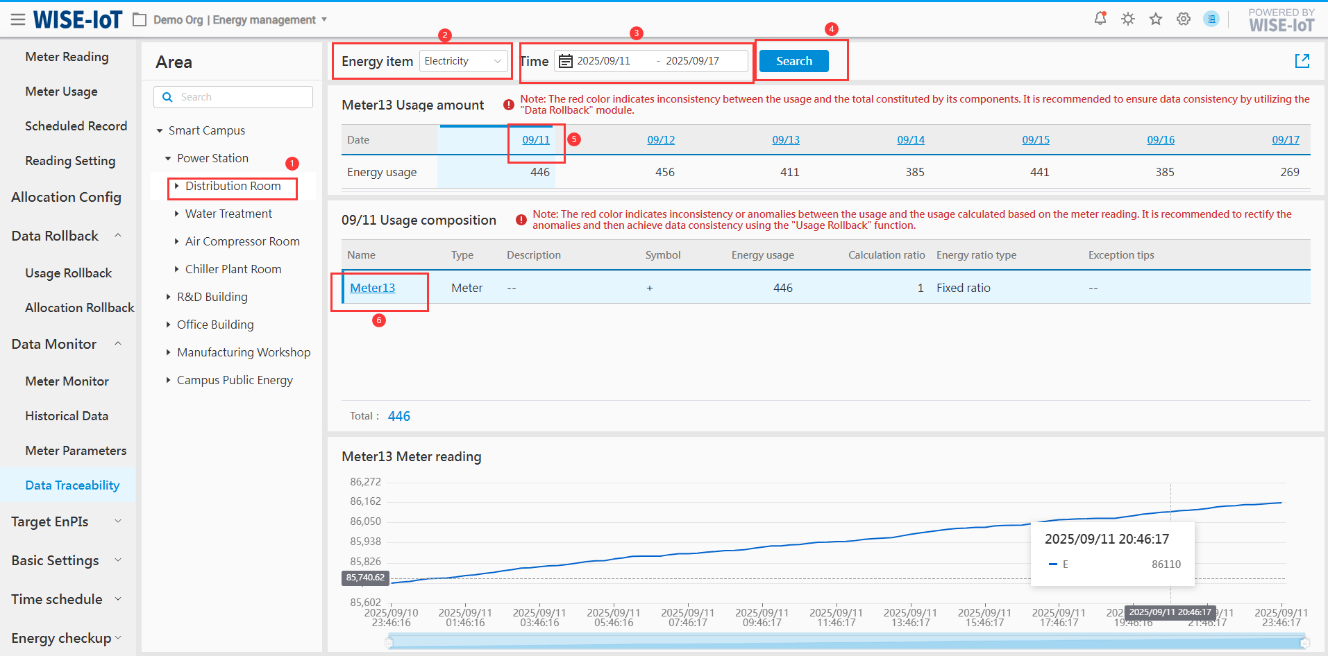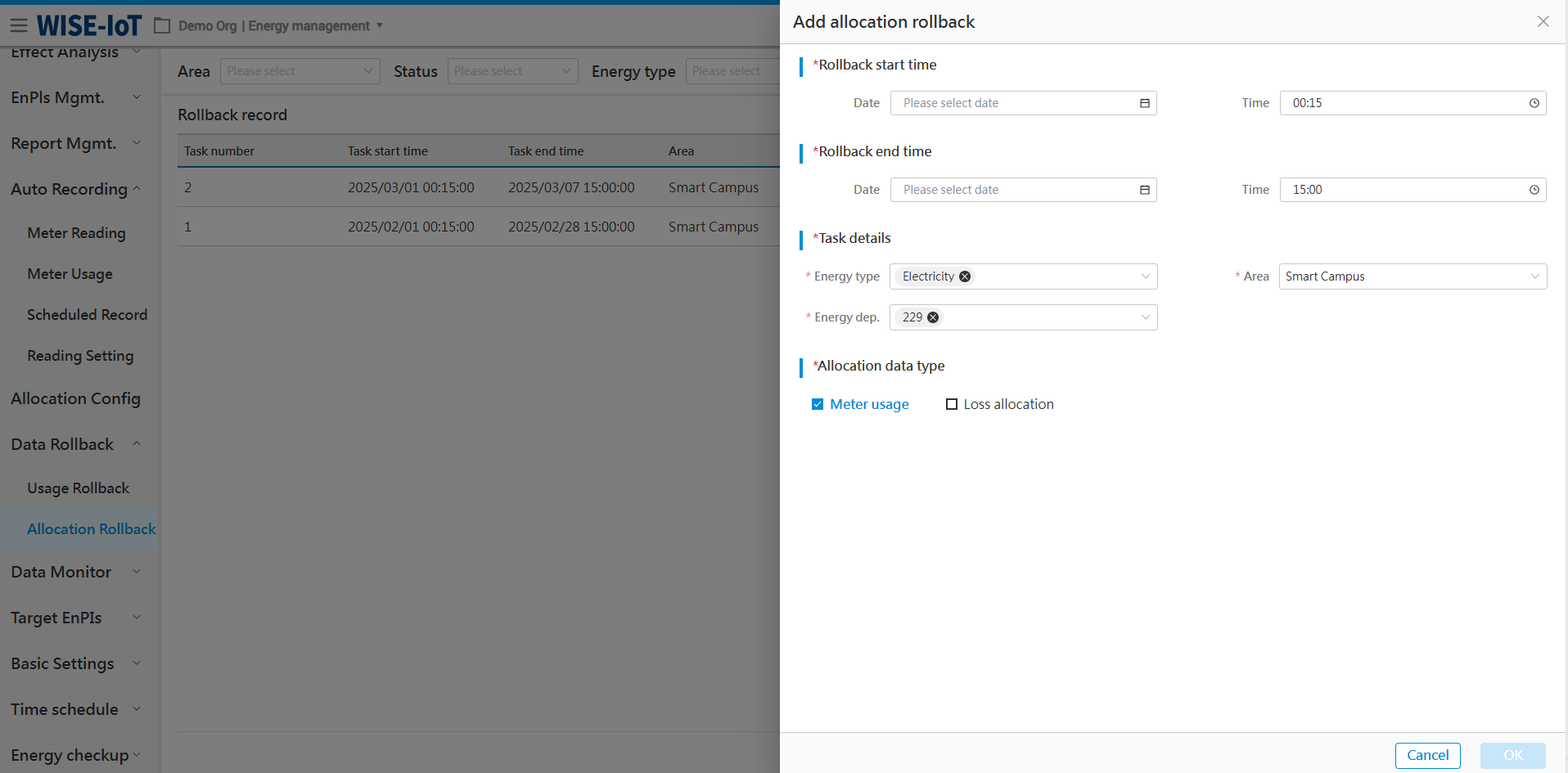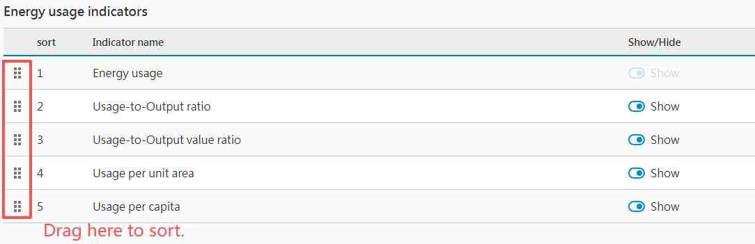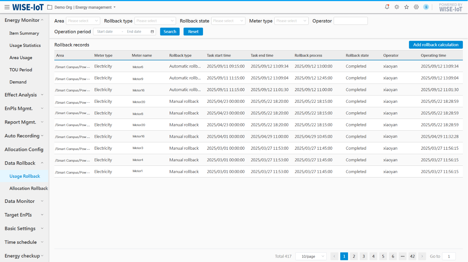 (1) Enable switching of statistical data for comprehensive energy usage and various energy types;