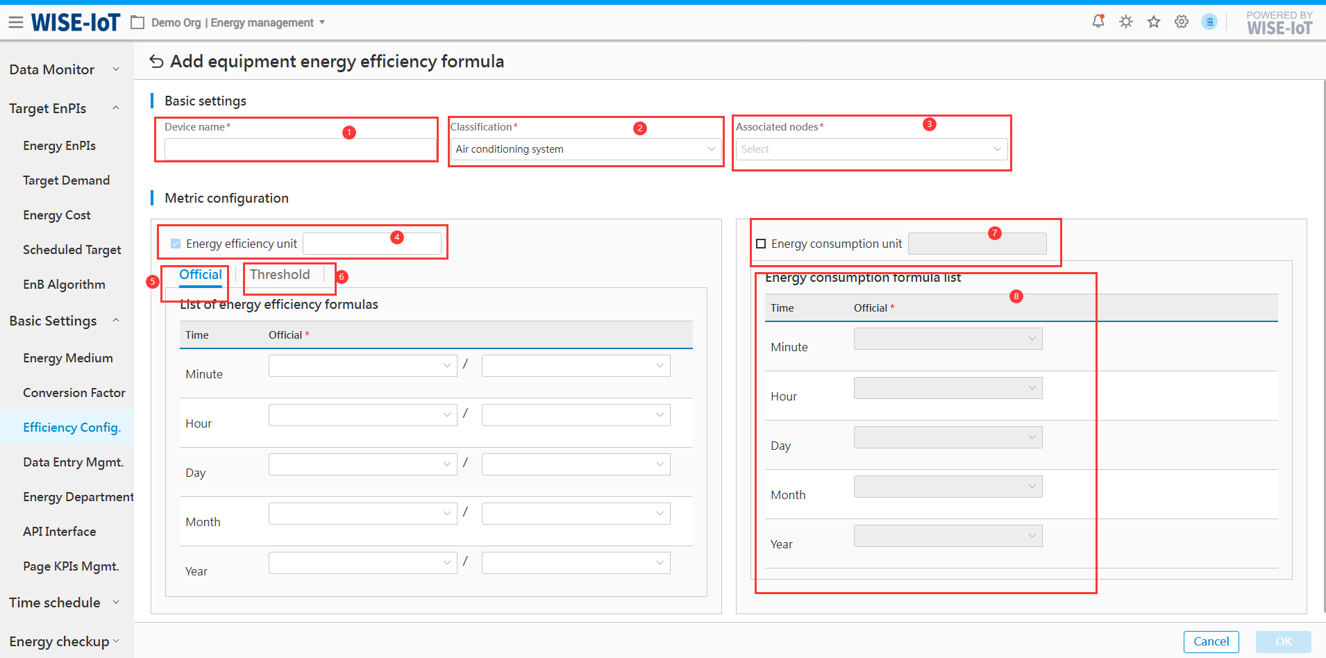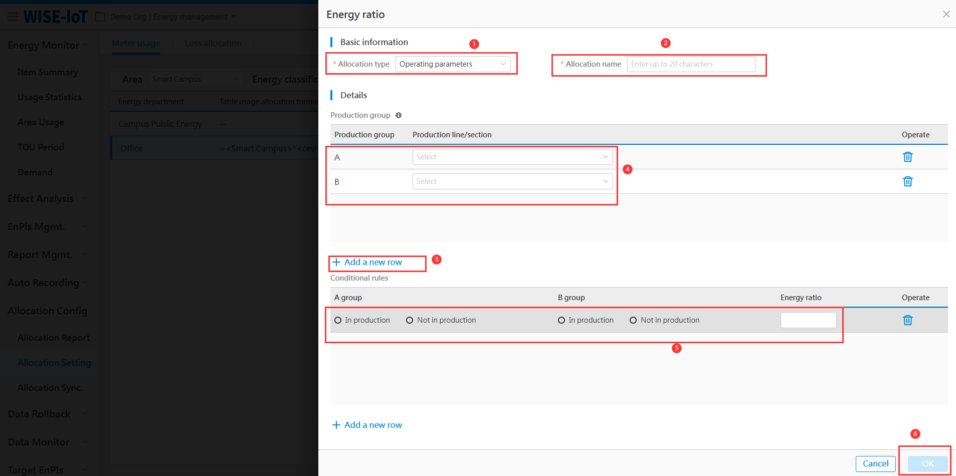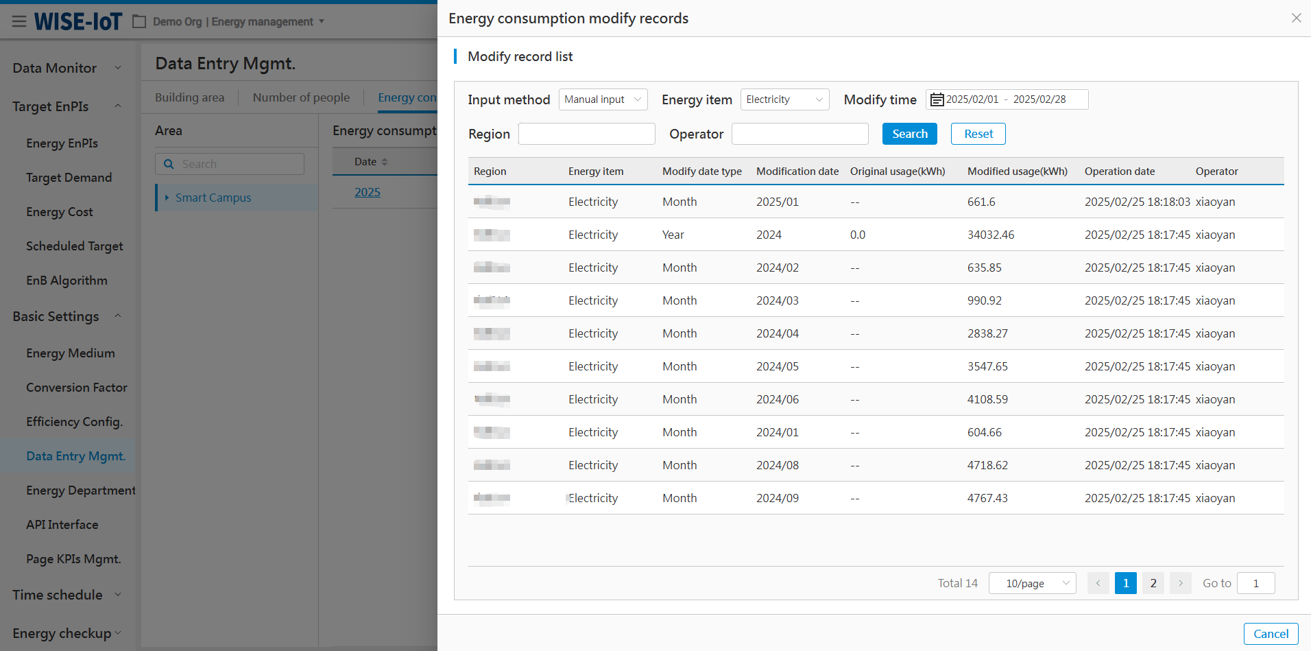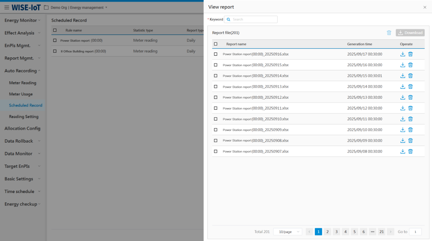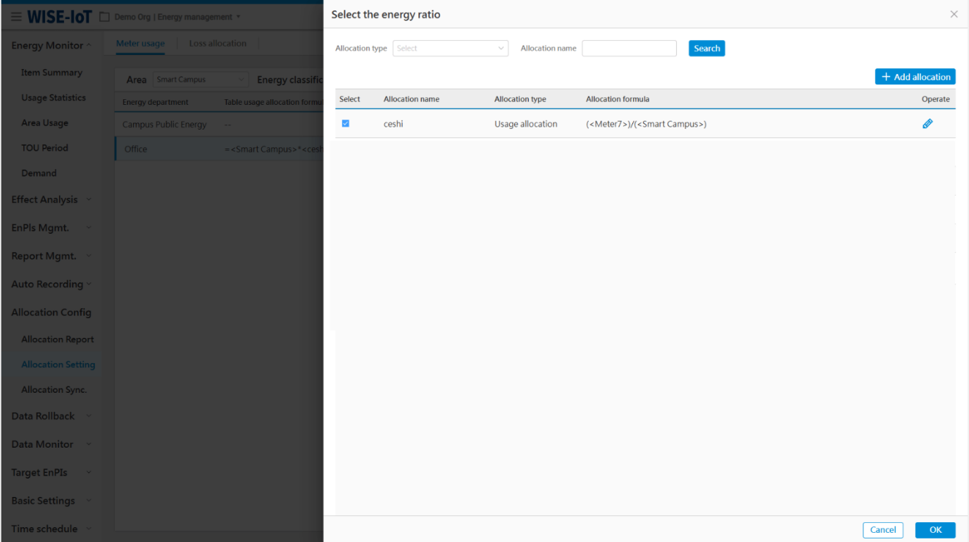 (1) Enable switching of statistical data for comprehensive energy usage and various energy types;