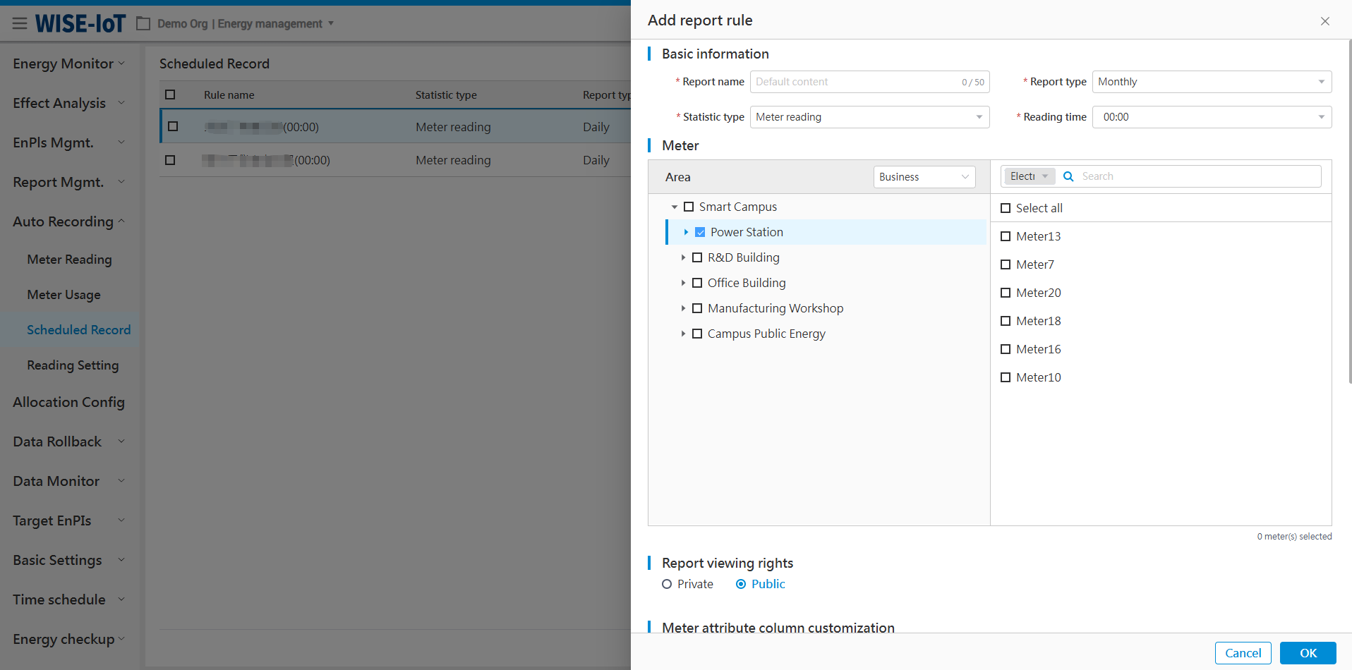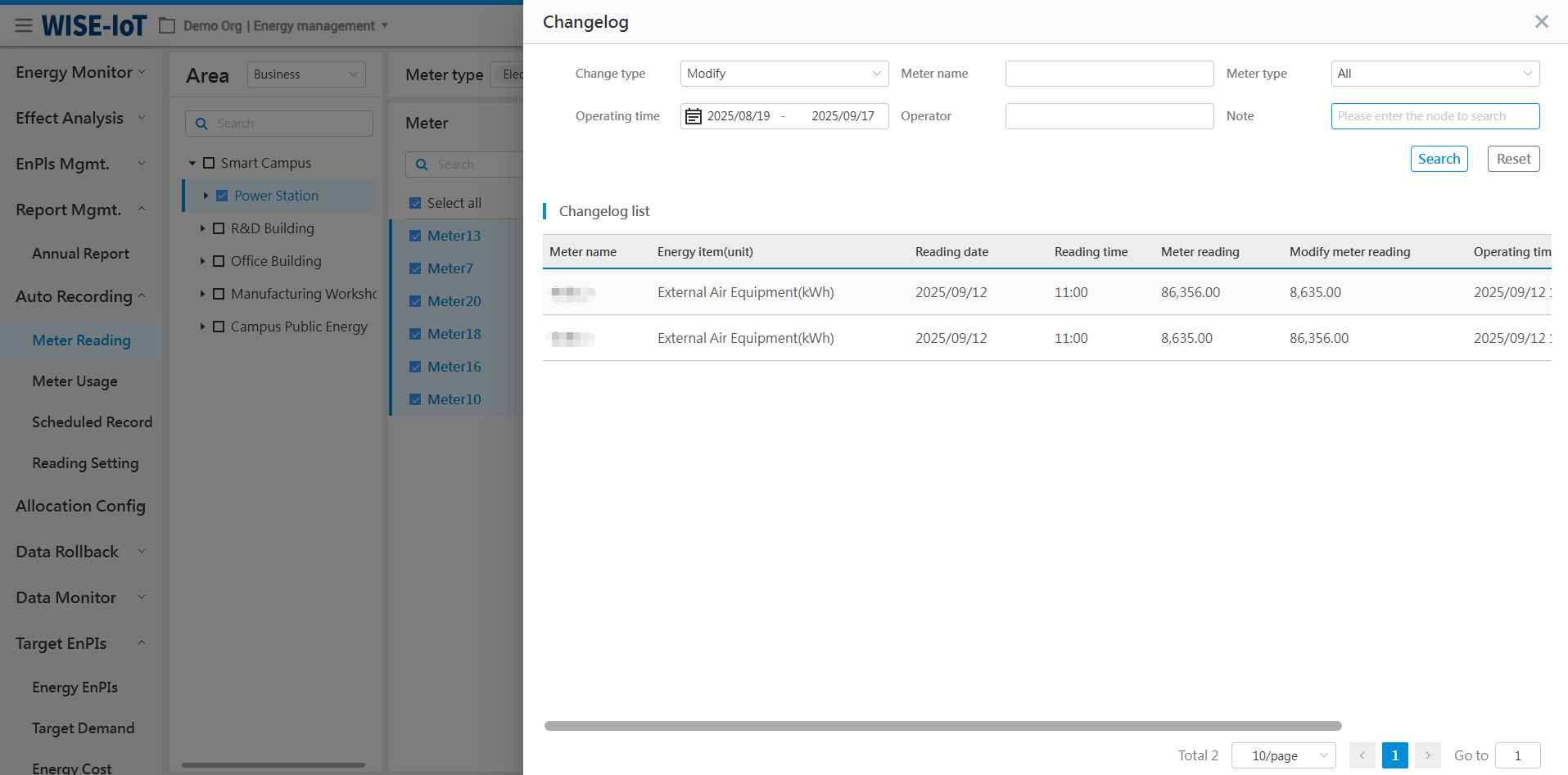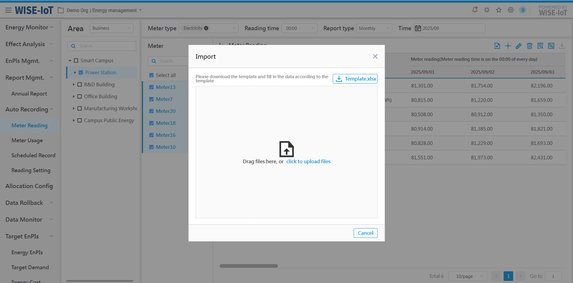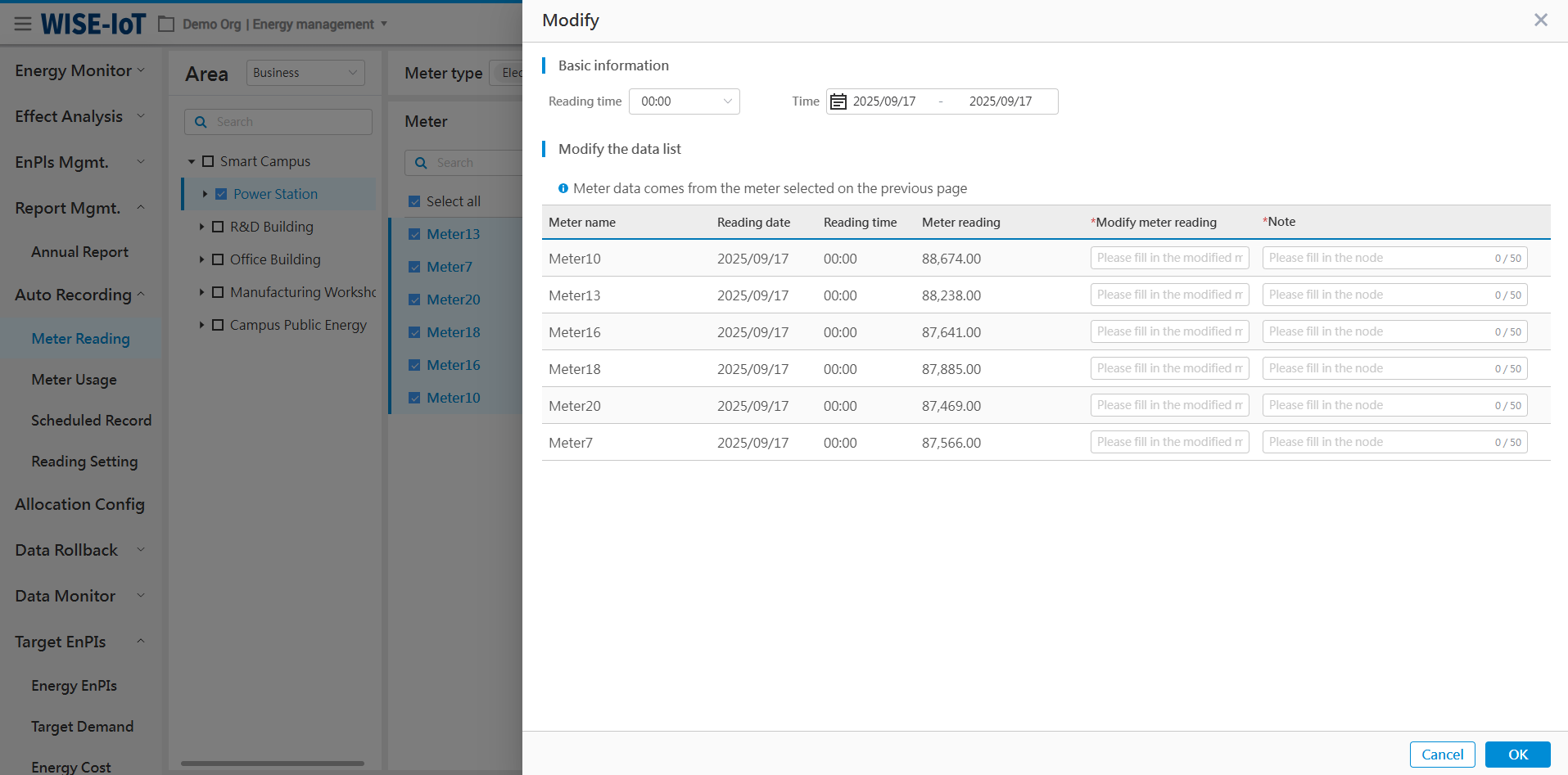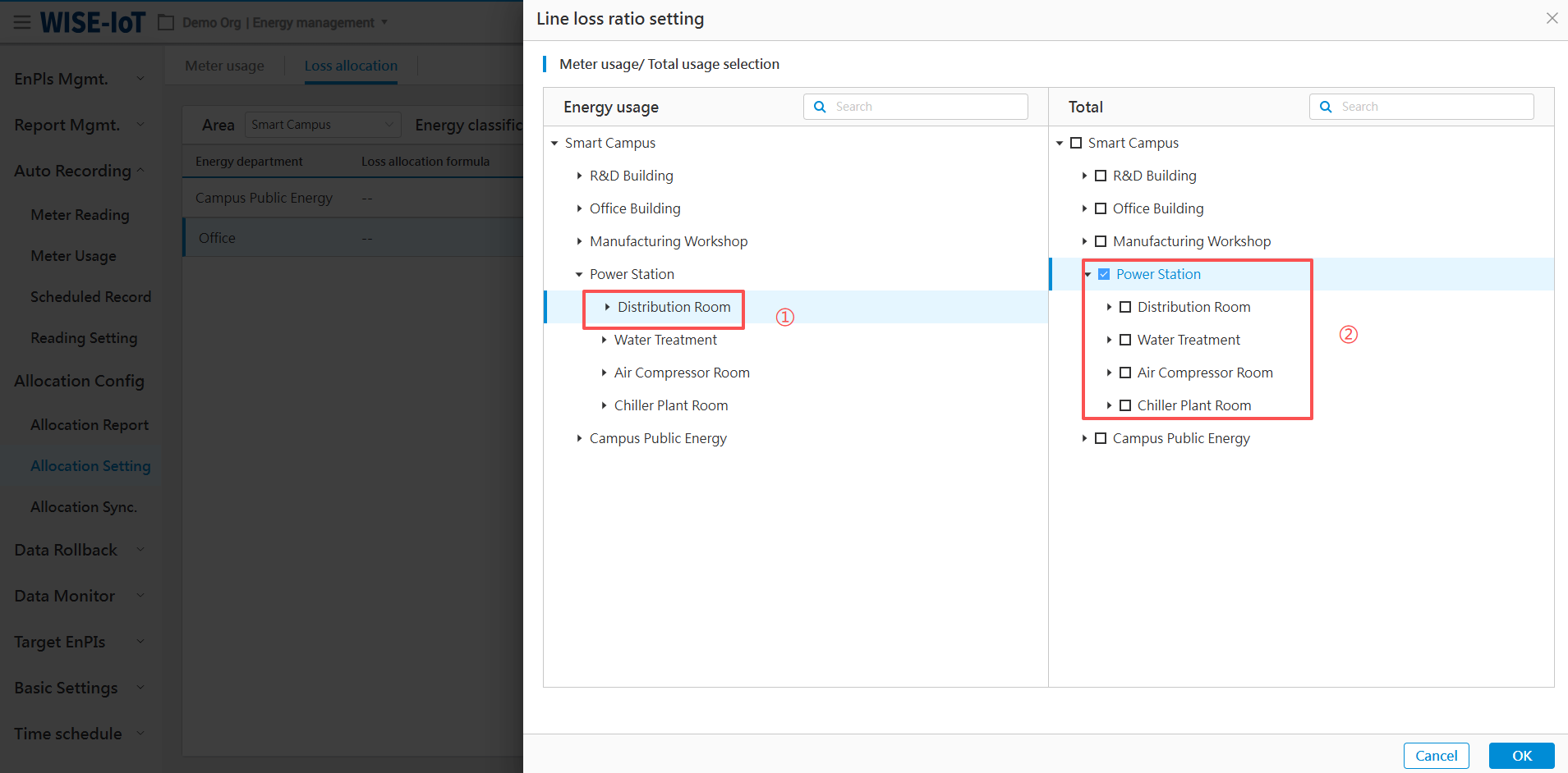 (1) Enable switching of statistical data for comprehensive energy usage and various energy types;