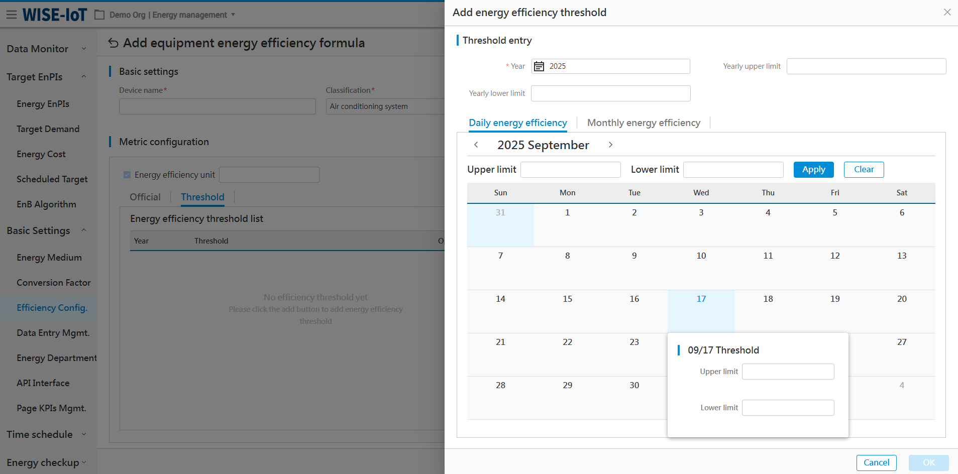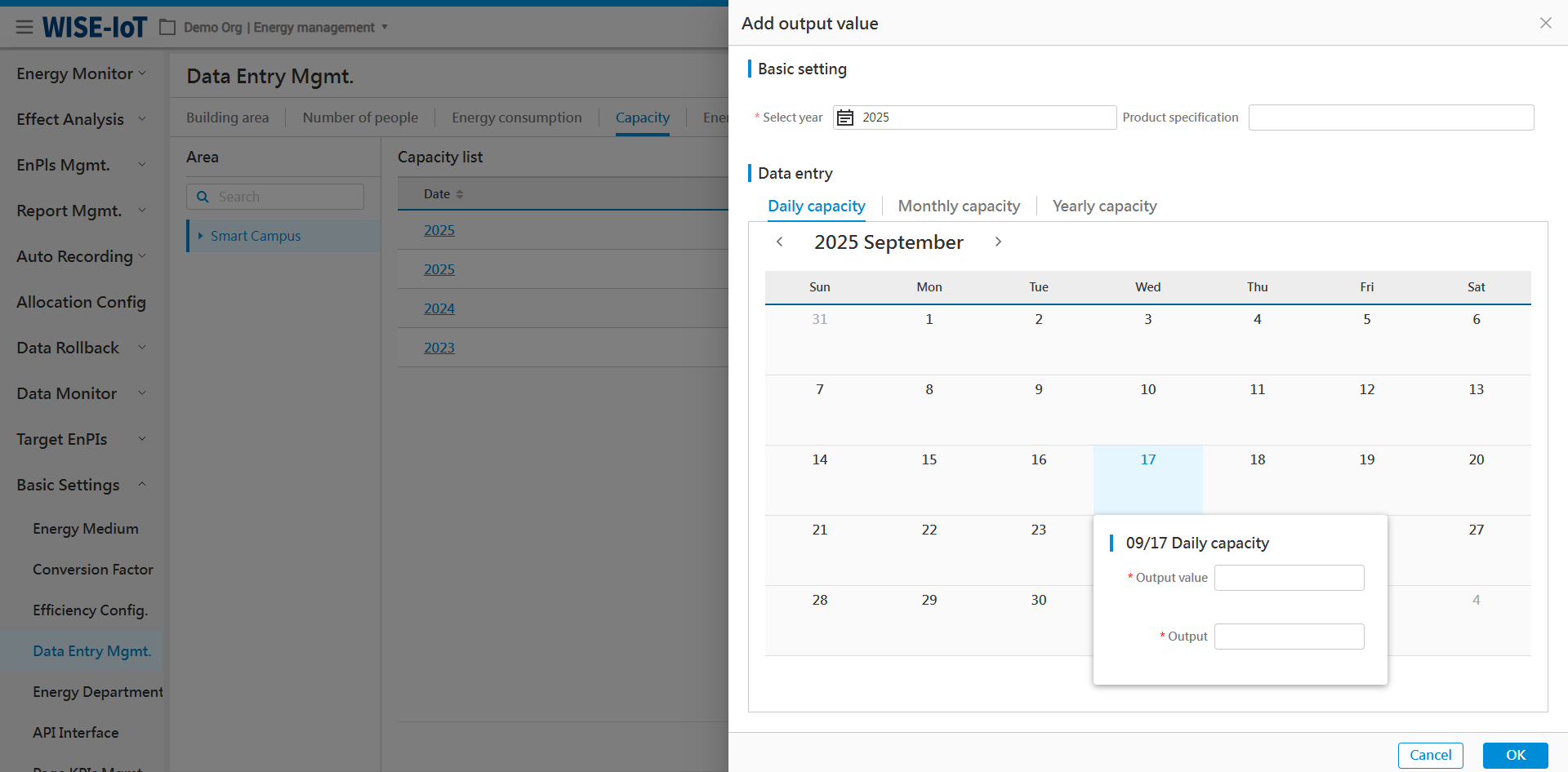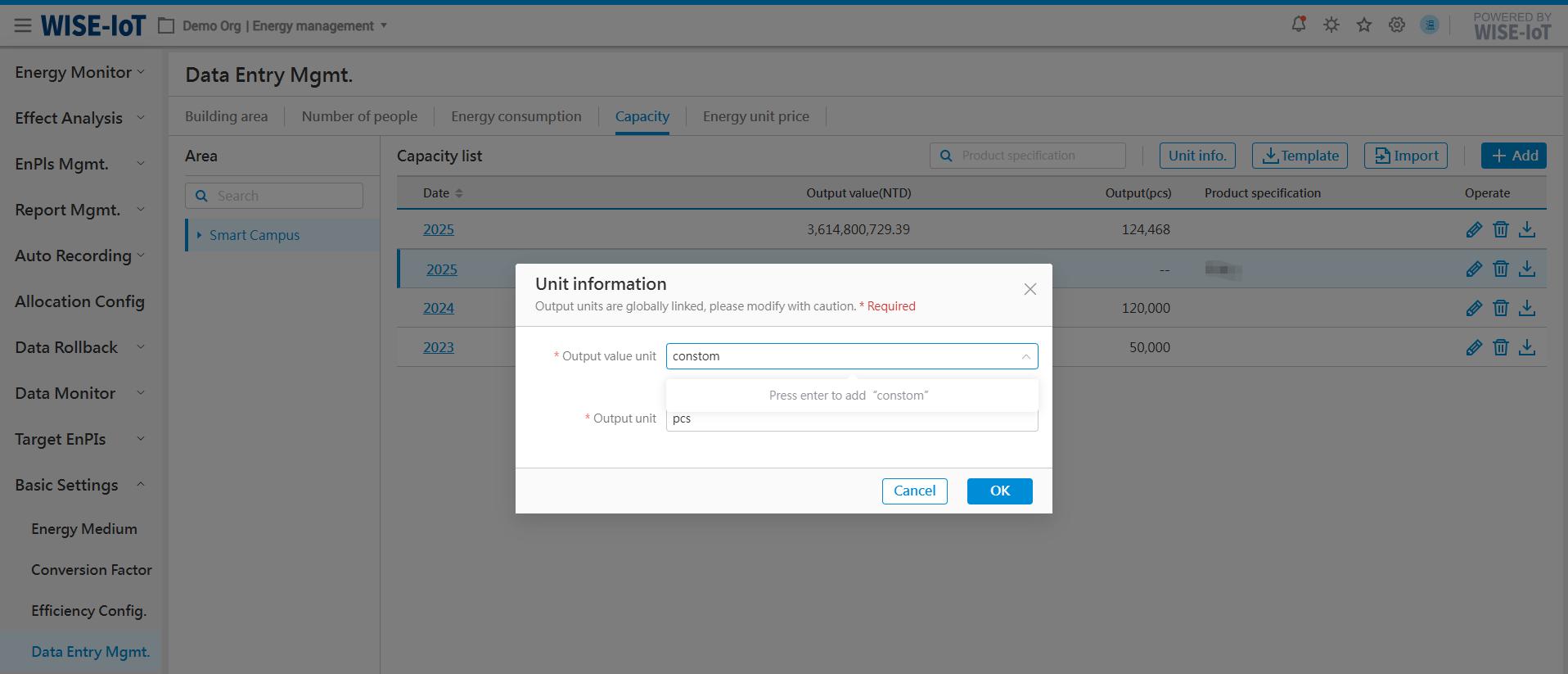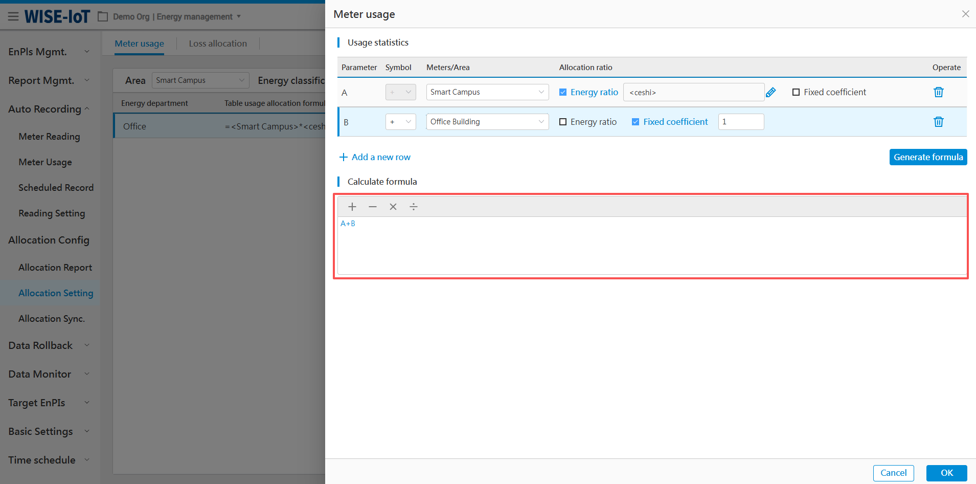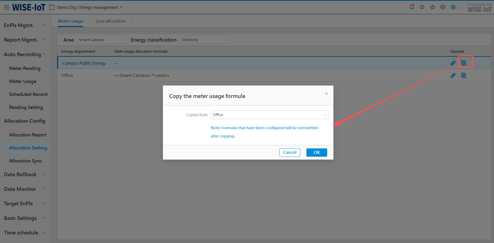 (1) Enable switching of statistical data for comprehensive energy usage and various energy types;