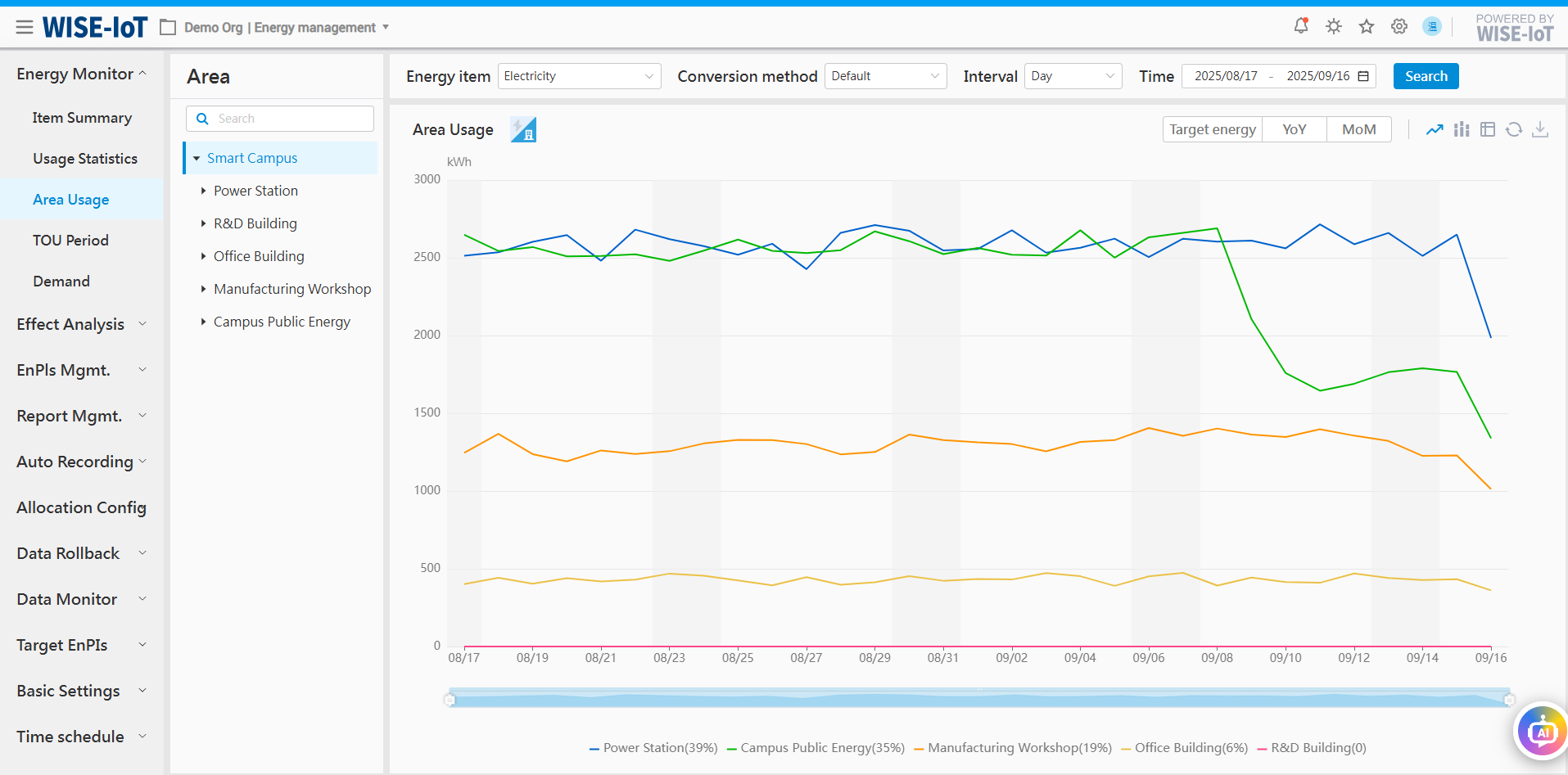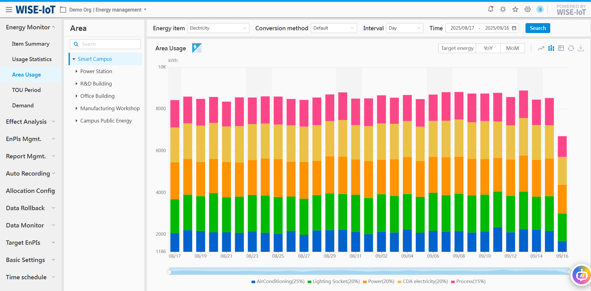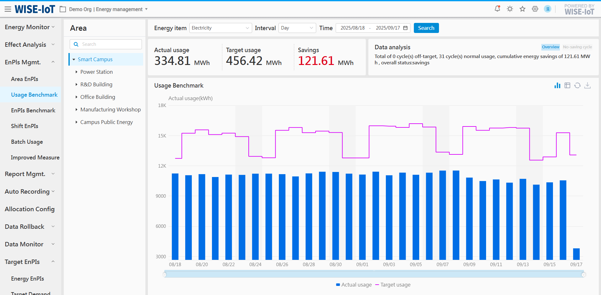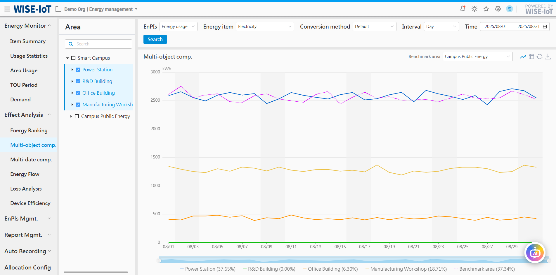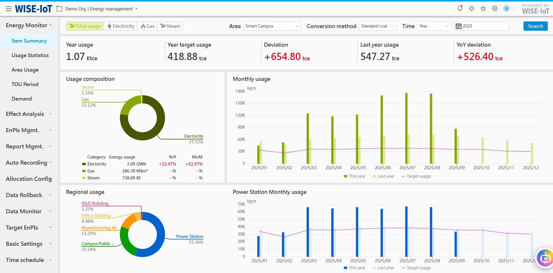 Advantech energy management system (iEMS/ECOWatch) records and analyzes energy usage data such as water, electricity, and gas to provide real-time monitoring, analysis, and performance assessment of energy usage for enterprises.