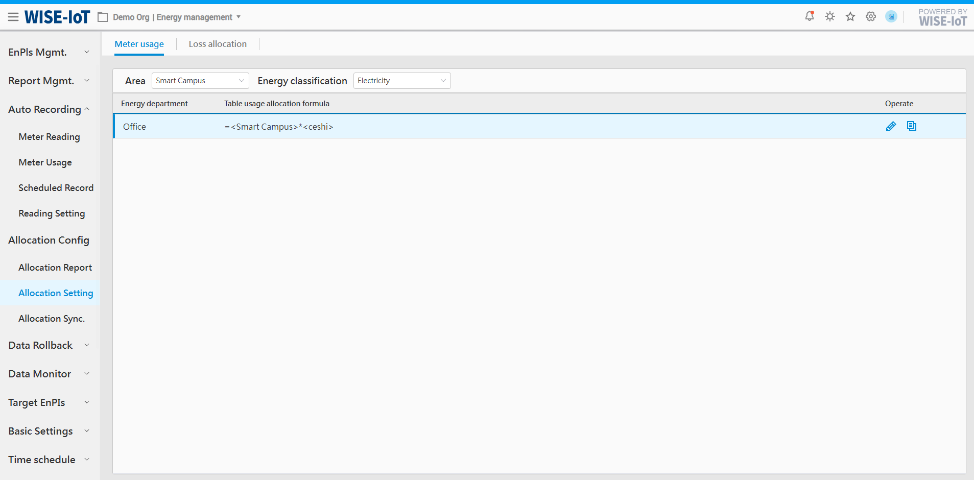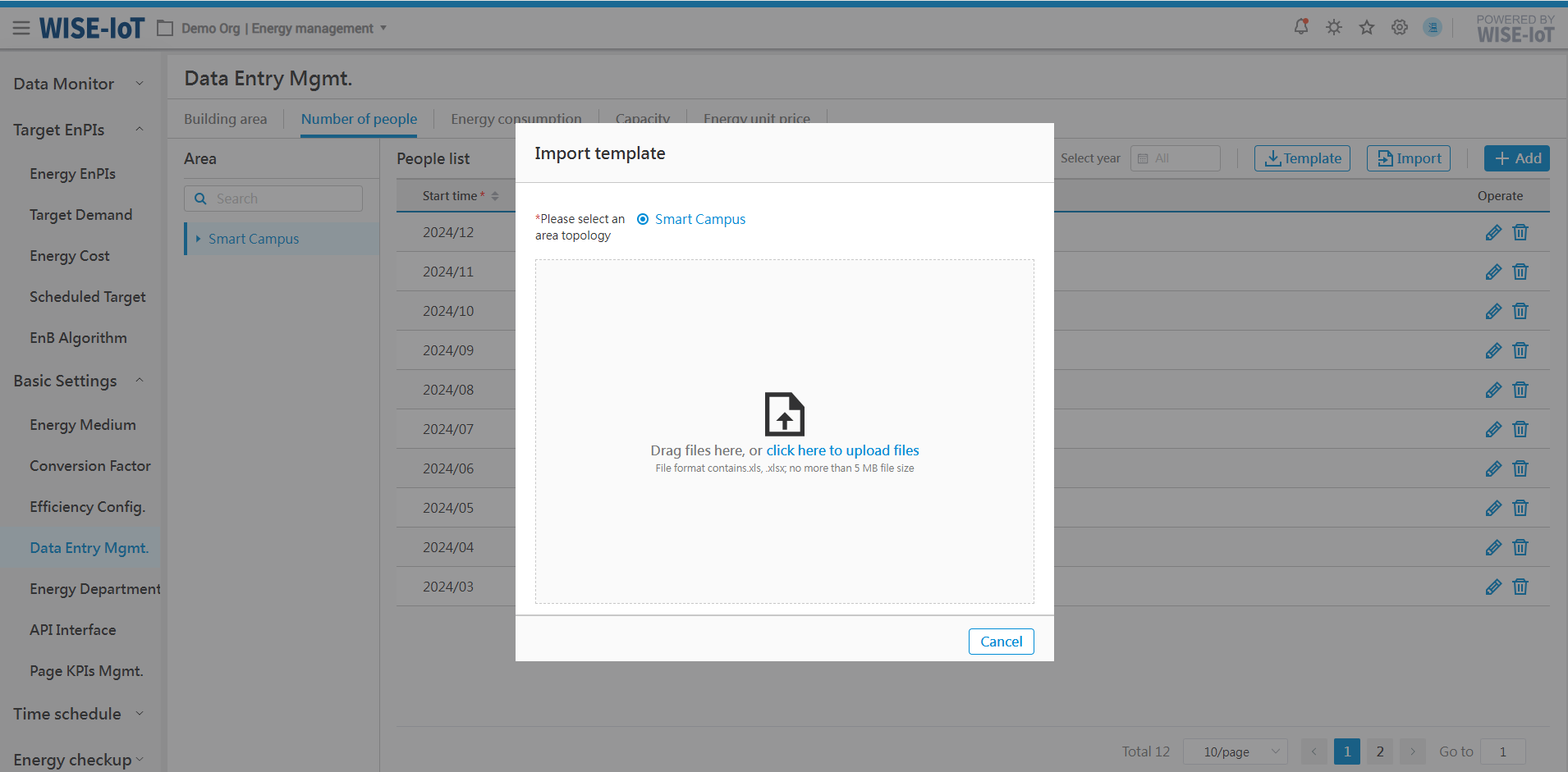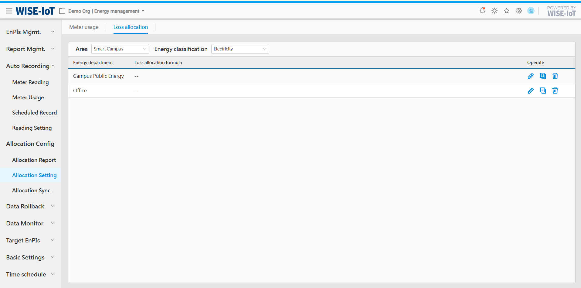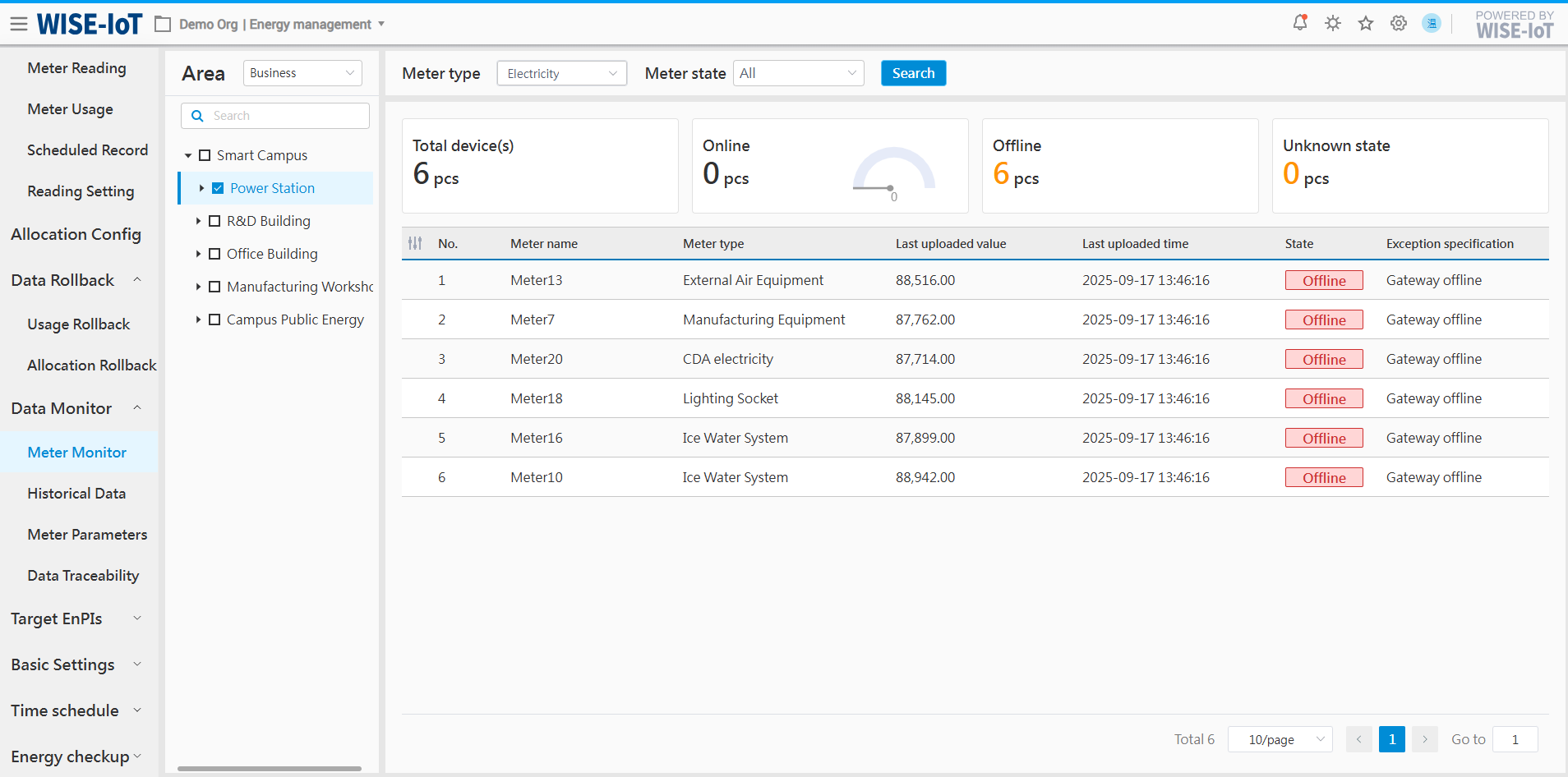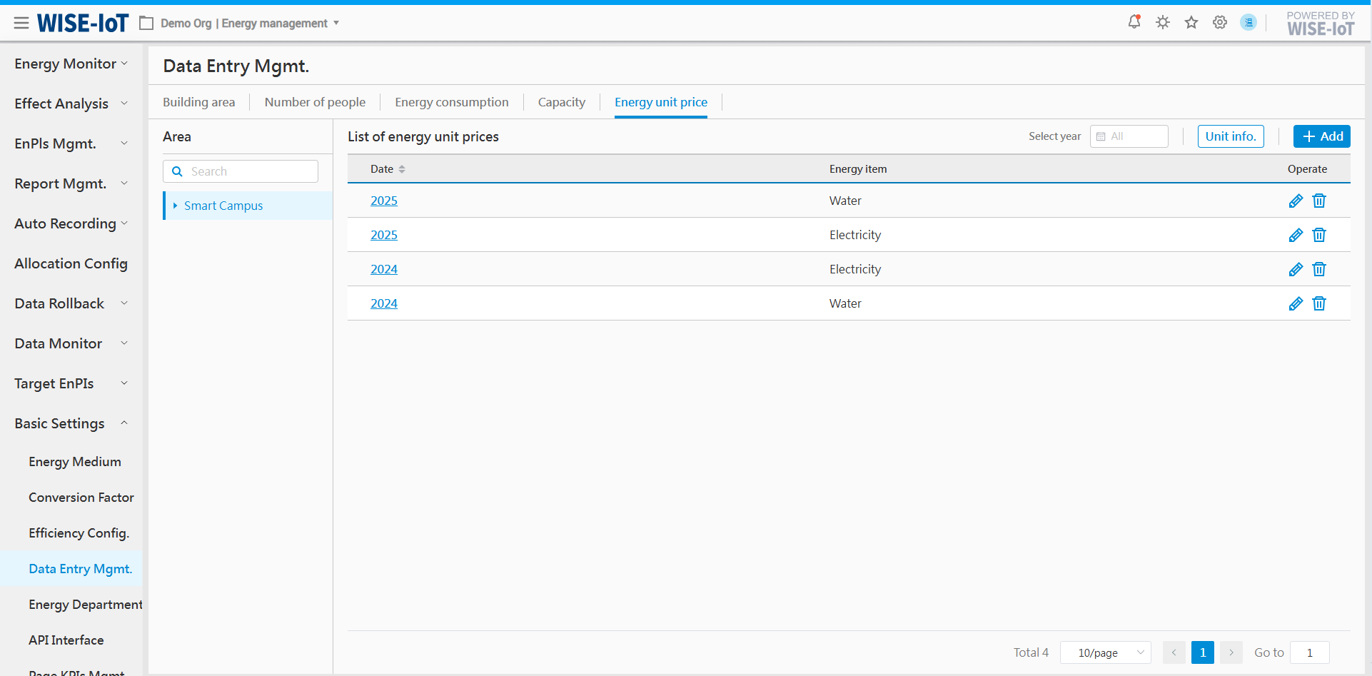 The module provides a holistic view of an enterprise's energy usage, displaying overall energy usage and usage by energy type. The energy medium statistics visible to users vary depending on the node in the interface.