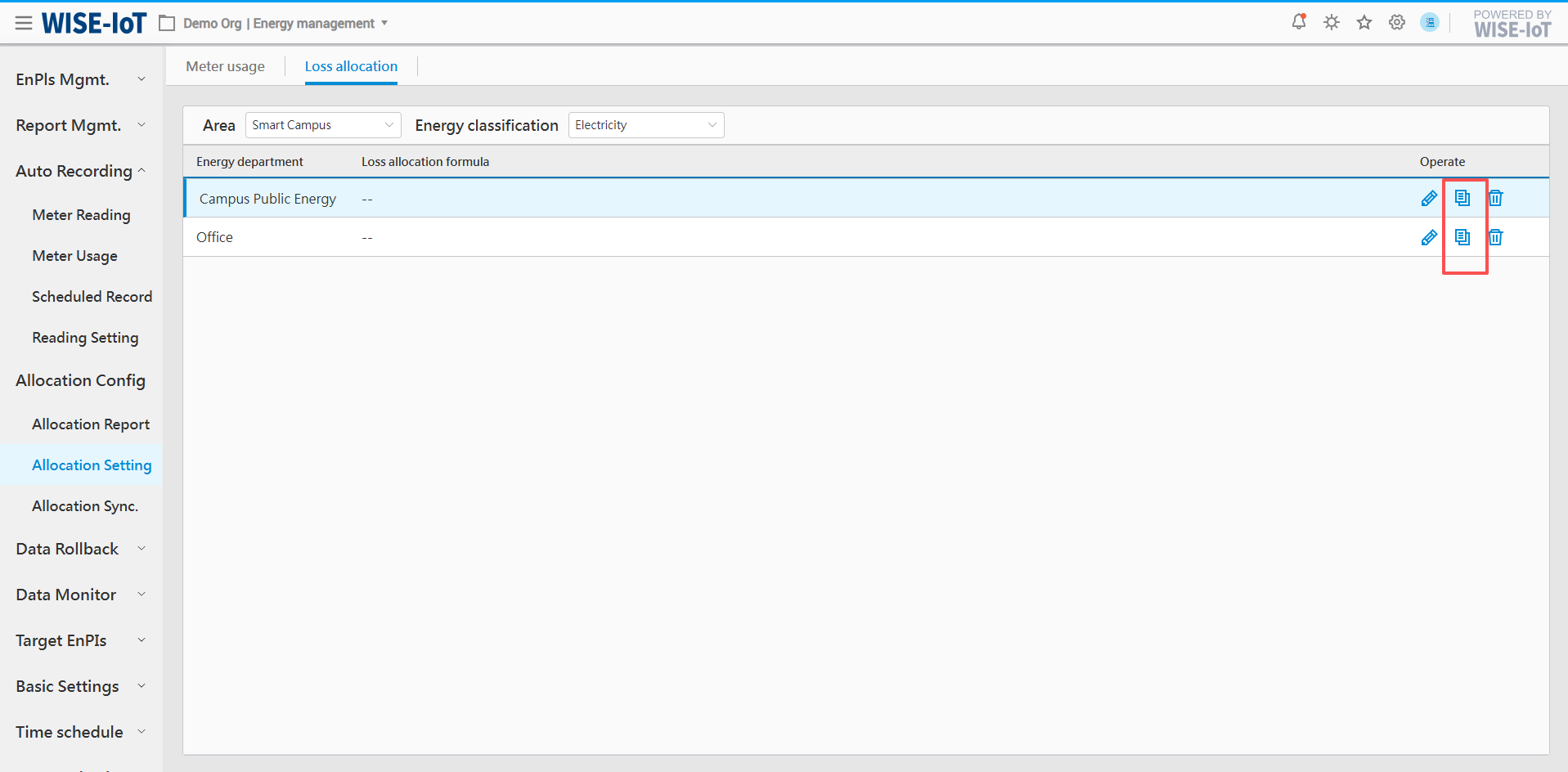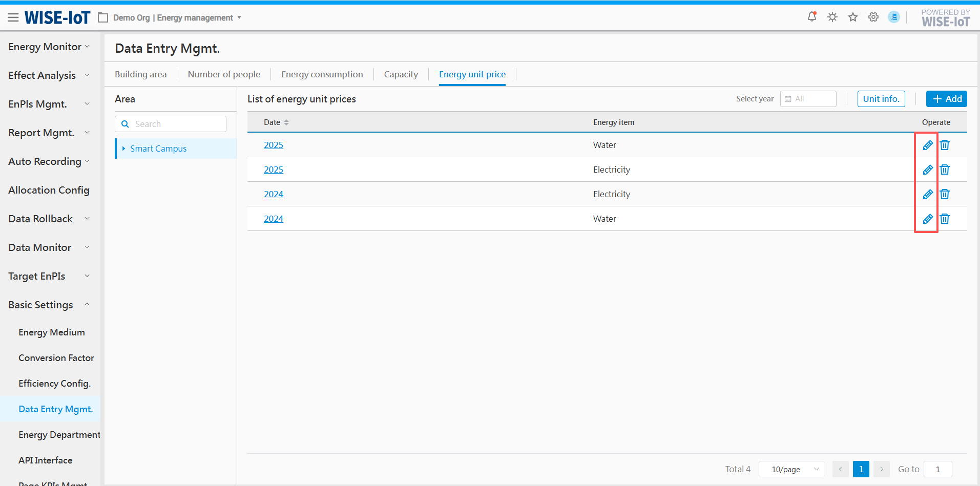 Click Energy Monitor- > Item Summary to go to the Energy Type Overview module.