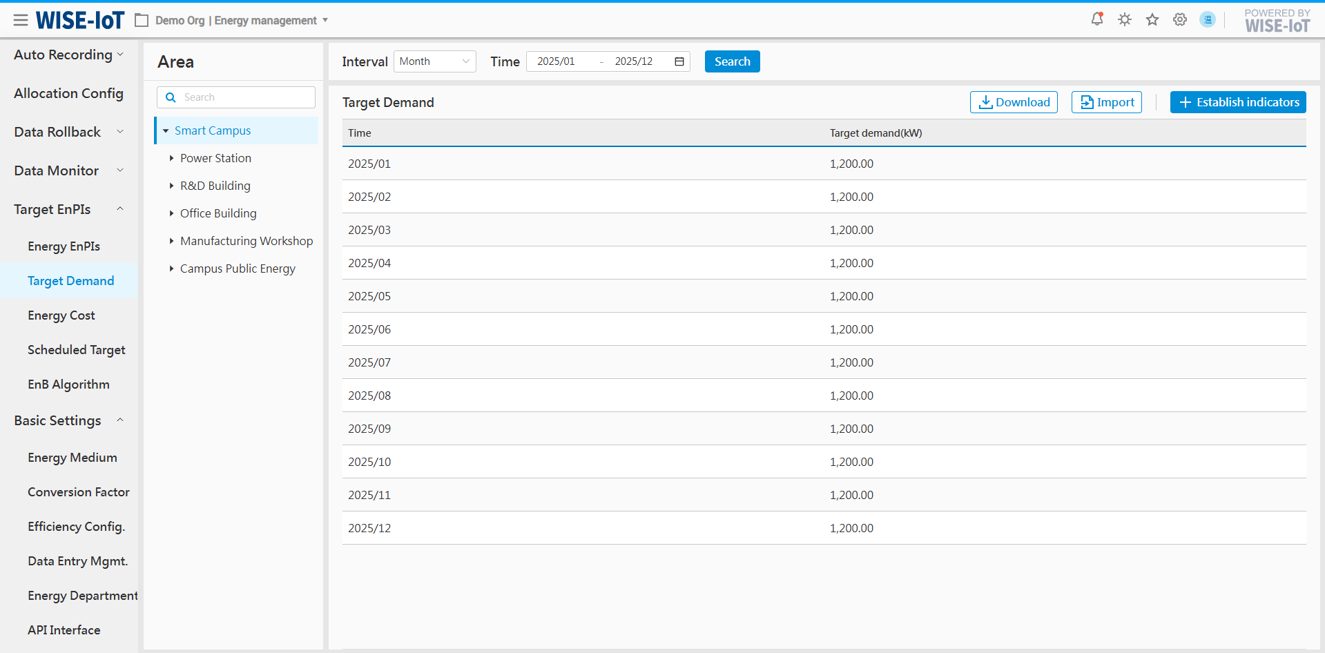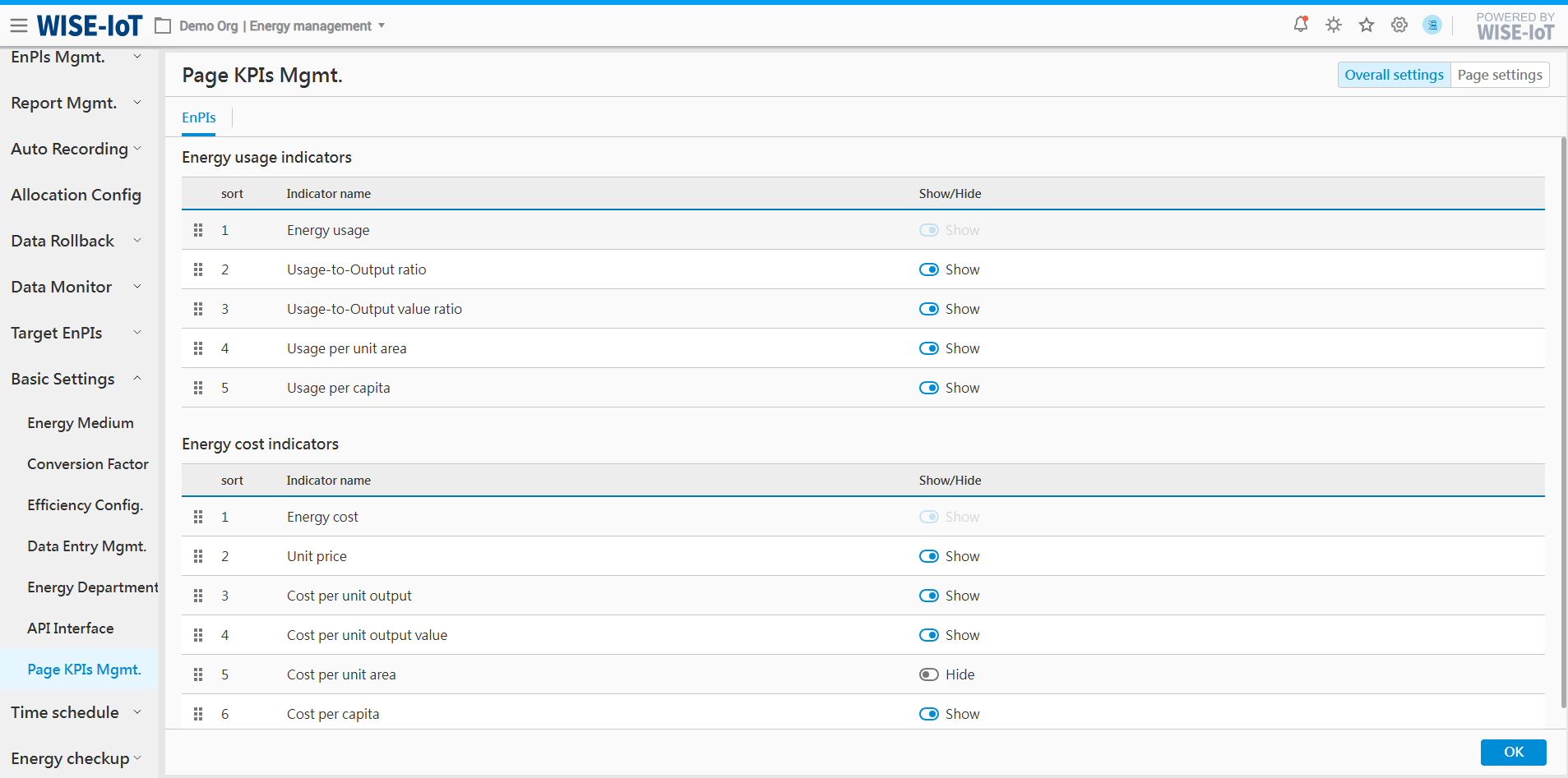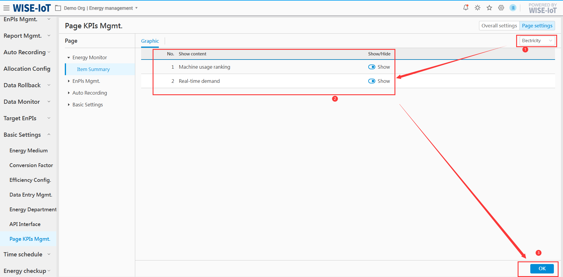 Display the real-time electricity demand. Users can navigate to Page Configuration > Single Page Configuration > Category Overview to hide it.