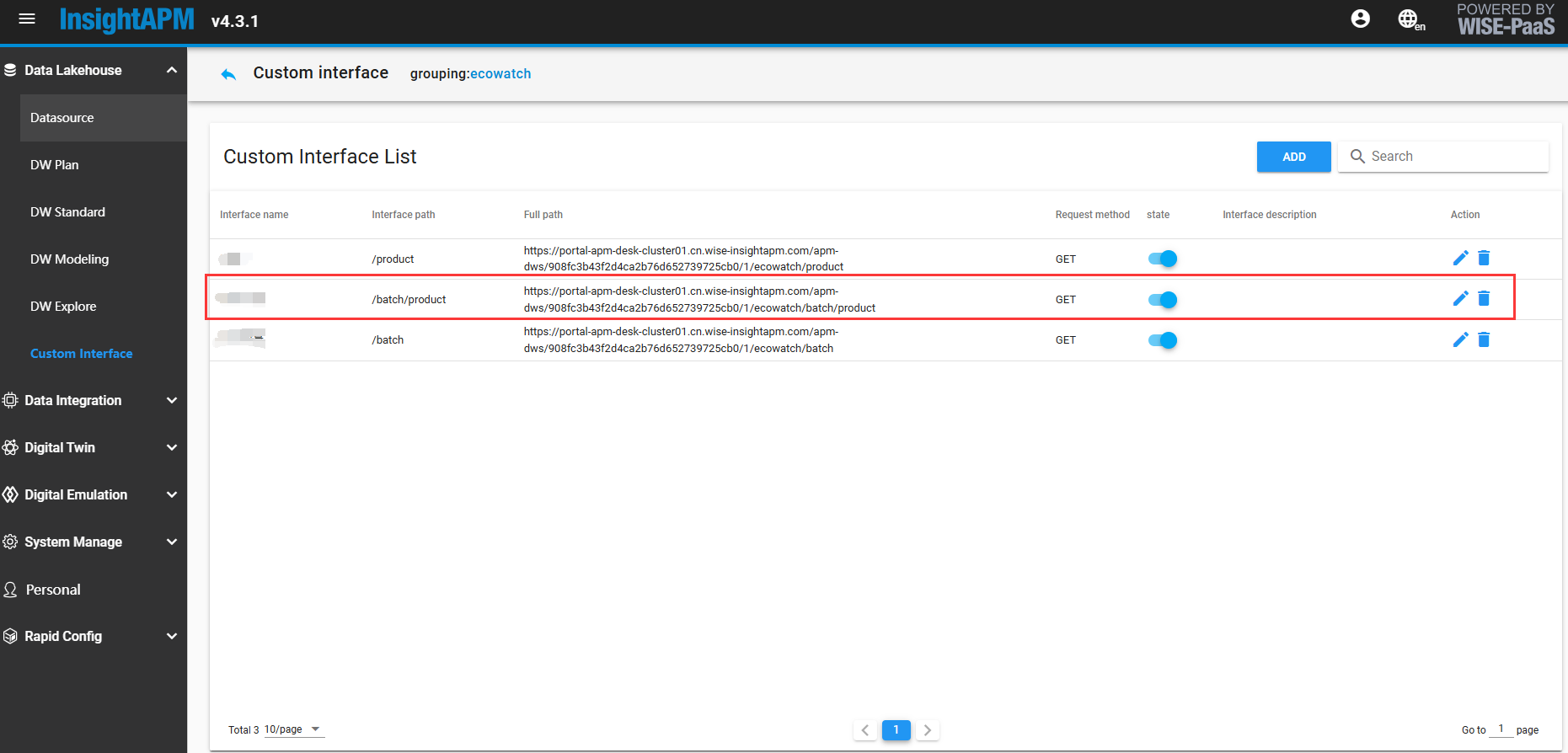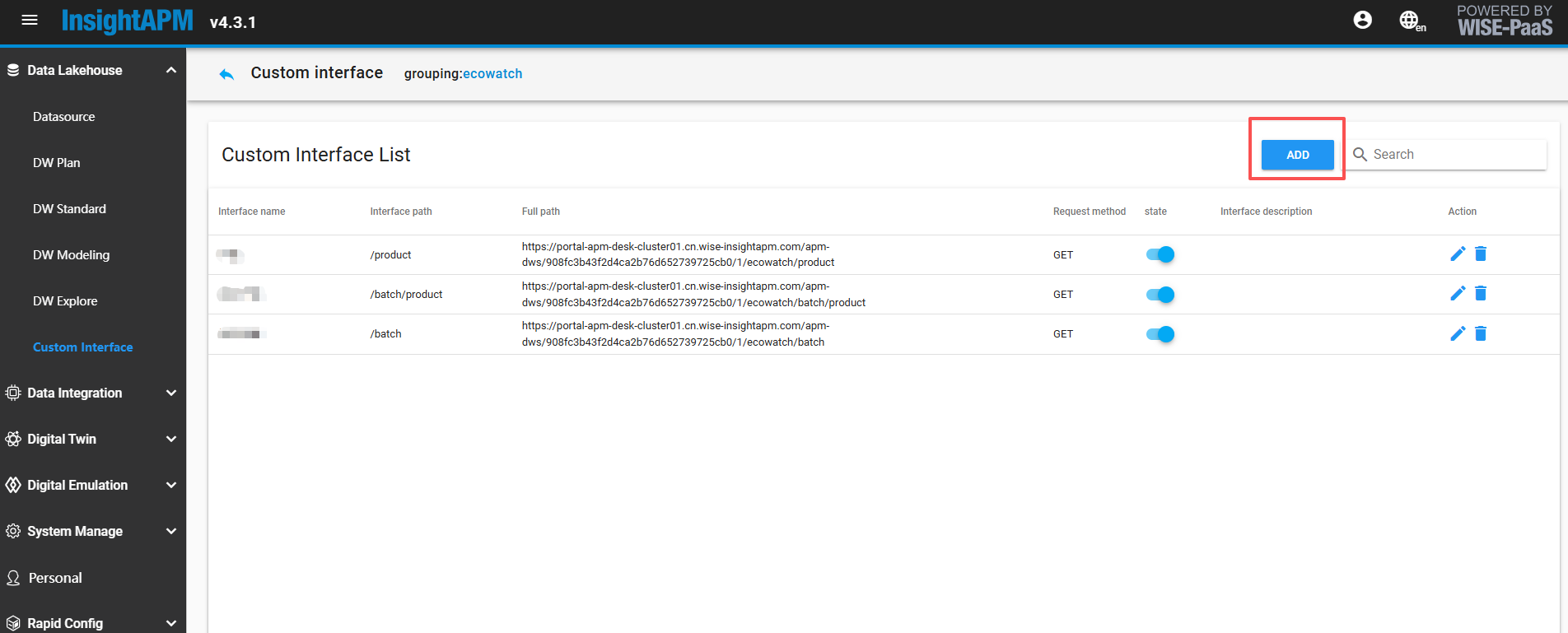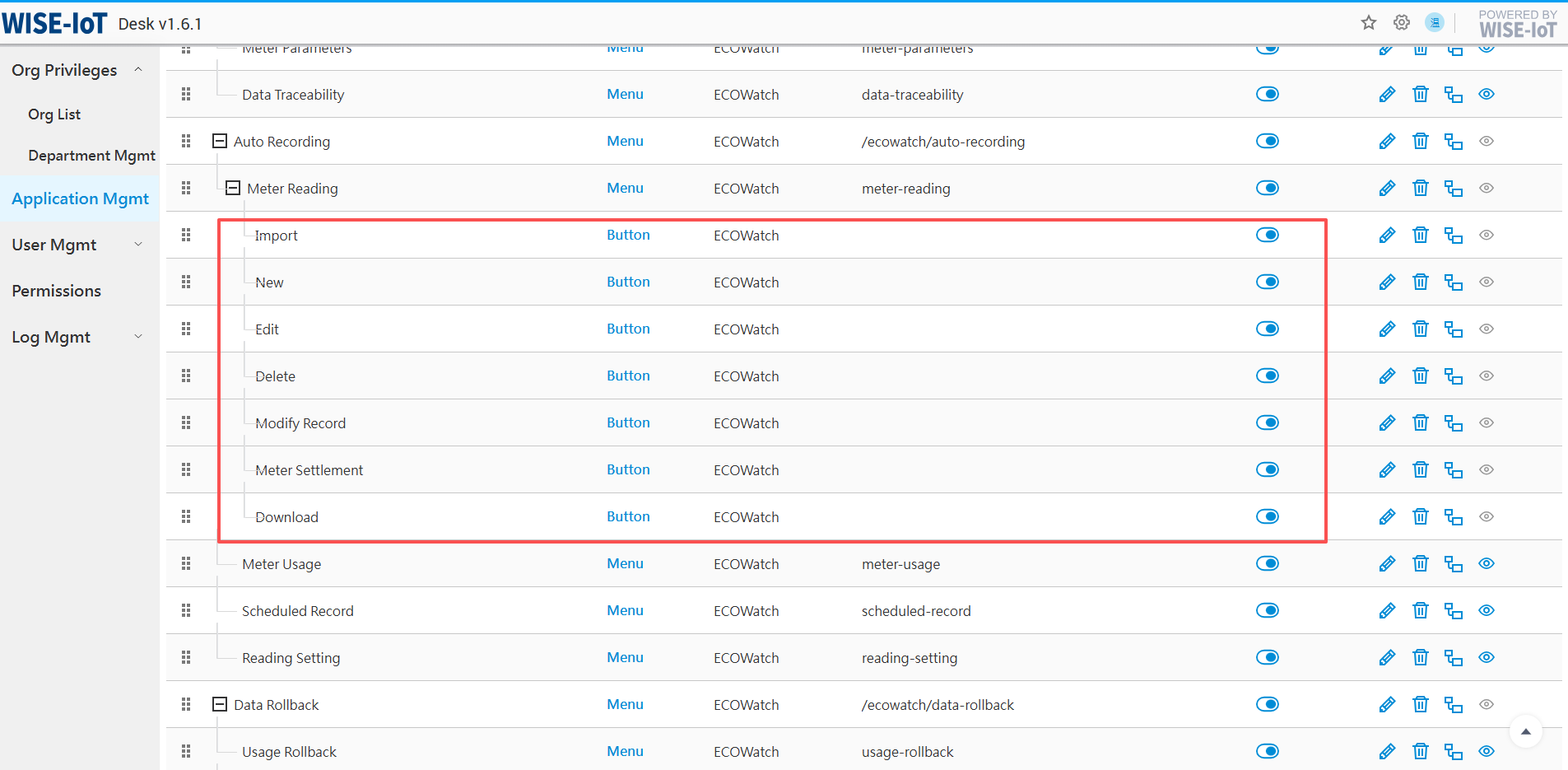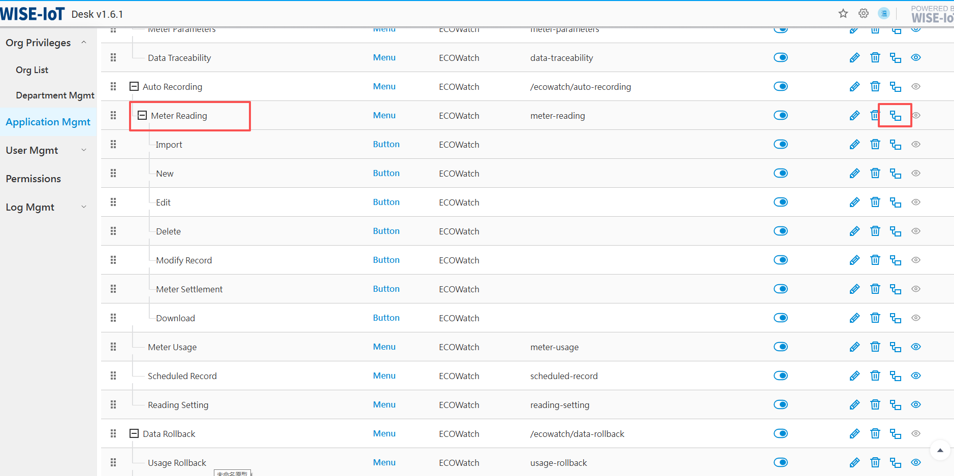 - After selecting an org, enter the application management page.Click [ECOWatch],Access the ECOWatch page, as shown below: