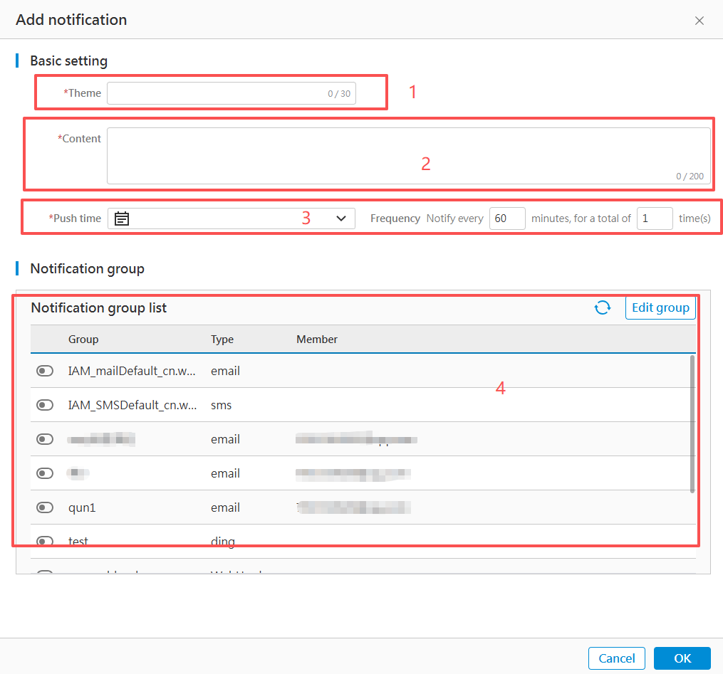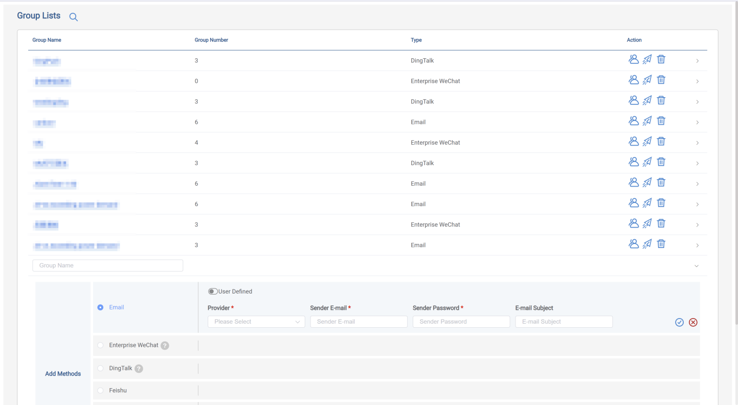 After the message notification method is created, notification group information needs to be added. The operation steps are as follows: