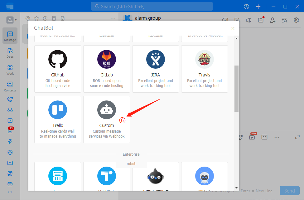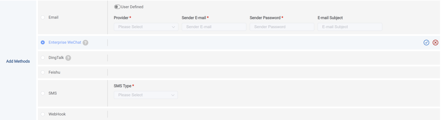- At Group List Select Enterprise WeChat notification method, click on the right side of the "