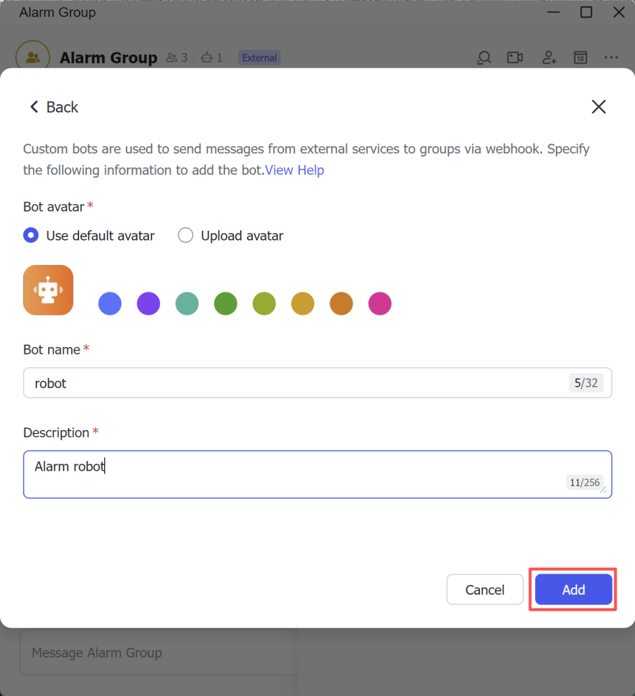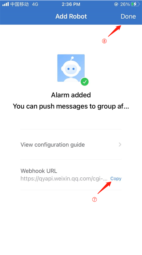 Webhook URL: Input Enterprise WeChat Group Webhook URL, the steps to obtain a URL are as follows:
