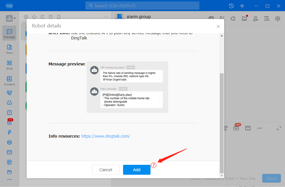 DingTalk: After the event is triggered, messages are automatically pushed to the DingTalk group.