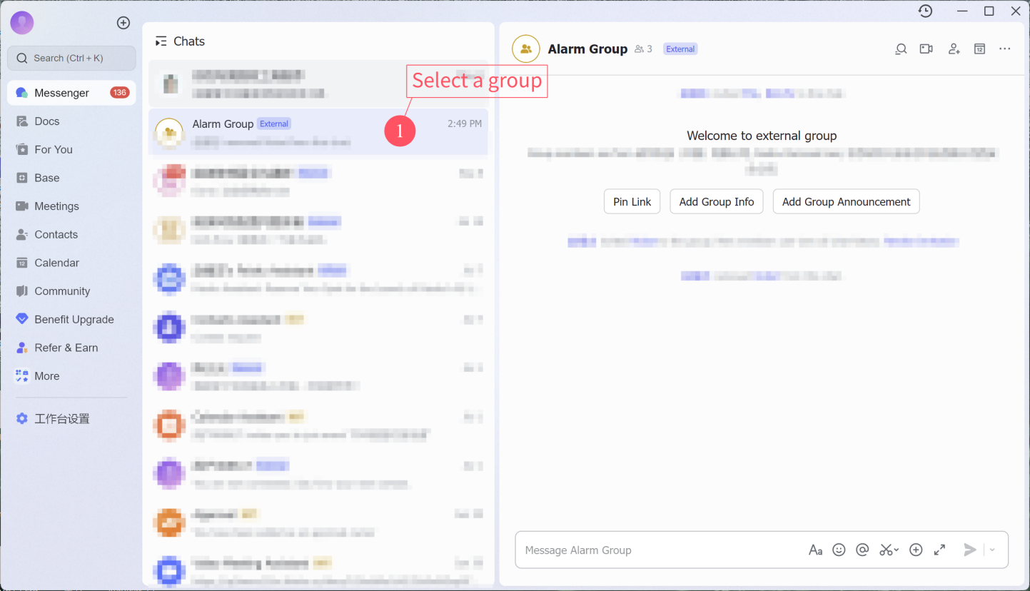 - At Group List select in""Feishu" methods, click the right-hand side's "