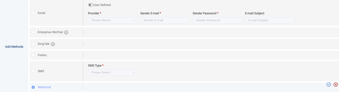Webhook After the message notification method is created, notification-related information needs to be added, and the operating steps are as follows: