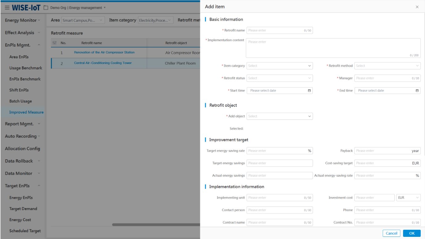 ECOWatch is dedicated to serving enterprises through scientific decision-making, lean management, and intelligent energy utilization. It establishes and operates an energy management system in the principle of ISO50001 energy management standard to help enterprises promptly identify blind spots in energy management, tap energy-saving potential, enhance their energy management level, and provide support for efficient energy utilization.
