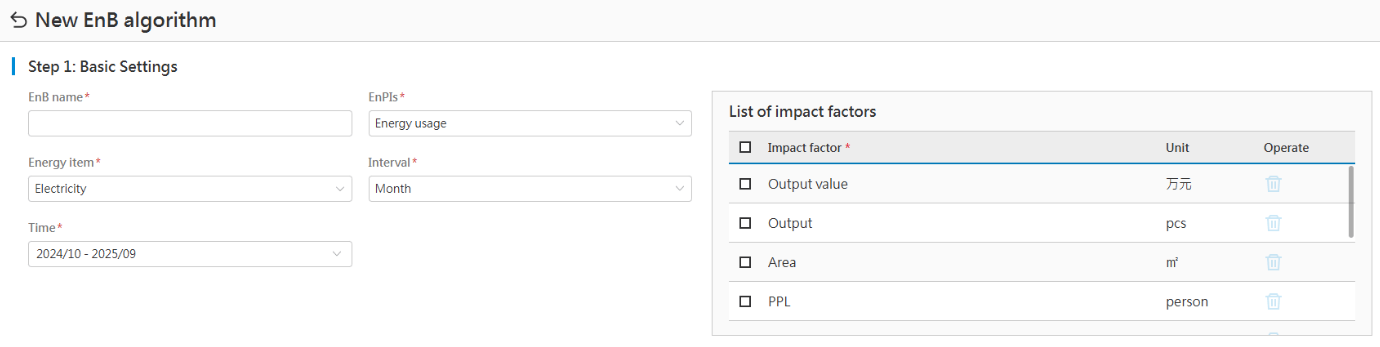 (2) The interface displays all energy types configured for the user's organization, such as electricity, water, natural gas, steam, diesel, etc.;
