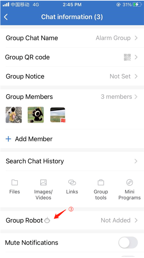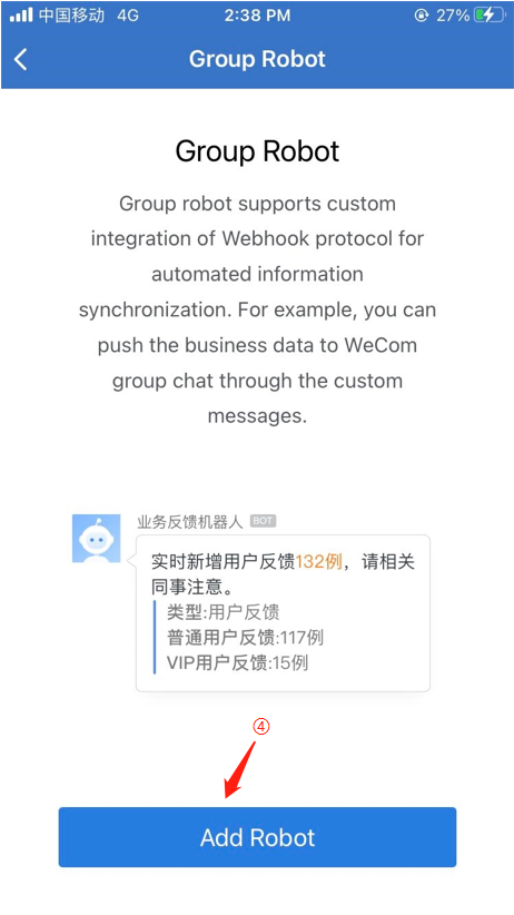 Webhook URL: Input Enterprise WeChat Group Webhook URL, the steps to obtain a URL are as follows: