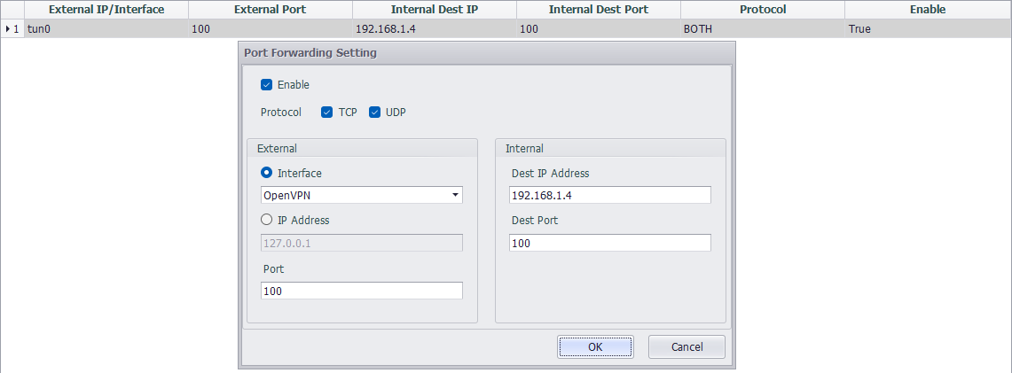 When a single Ethernet port of the gateway is connected to only one PLC, and the PLC configuration software transmits data through a fixed port, remote operation and maintenance can be directly achieved by using port forwarding.