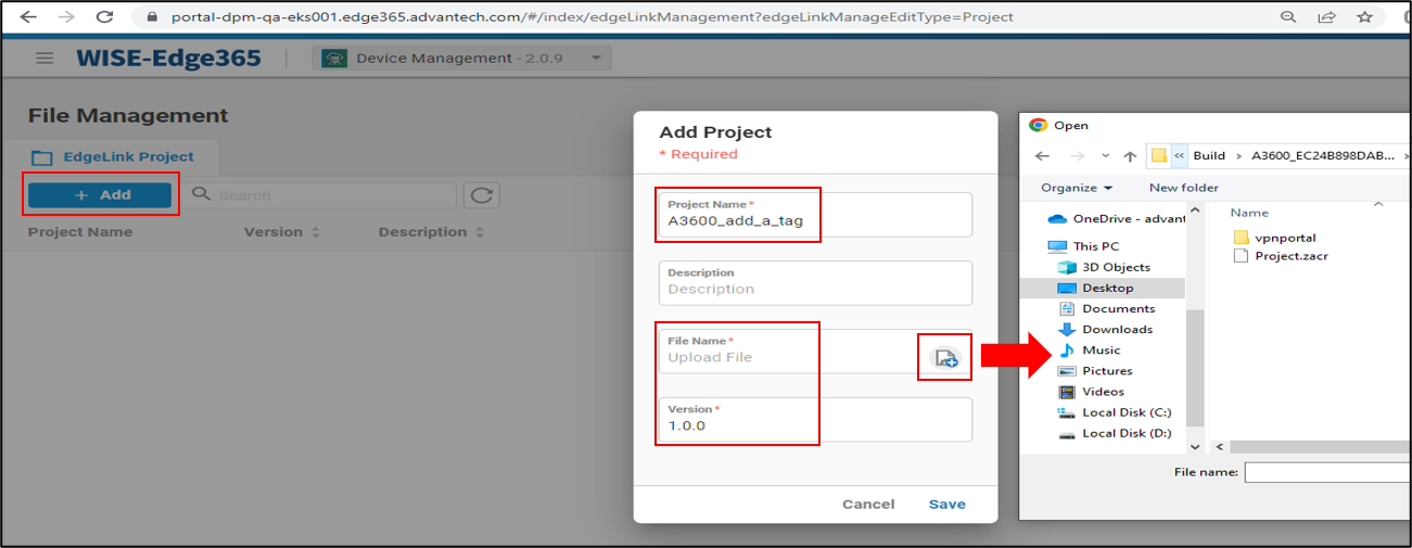 Method 2:Directly add the project file generated by EdgeLink Studio to EdgeSync 360/EdgeHub