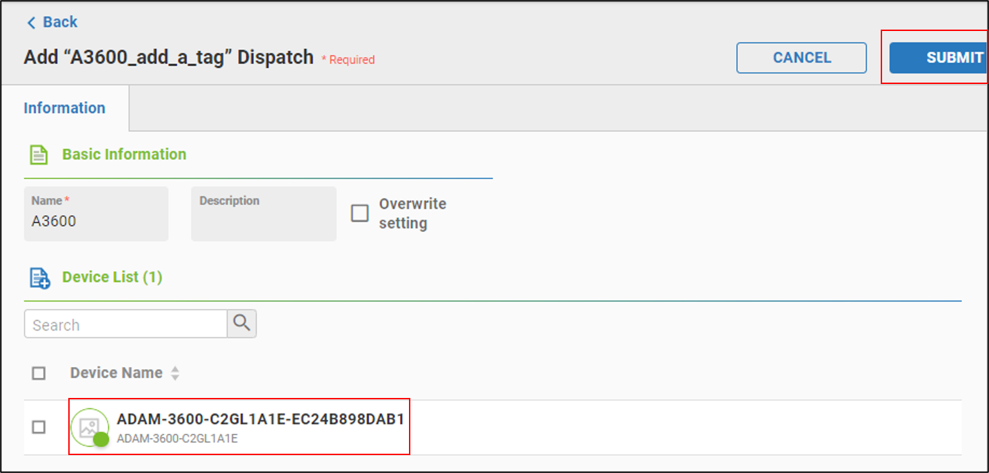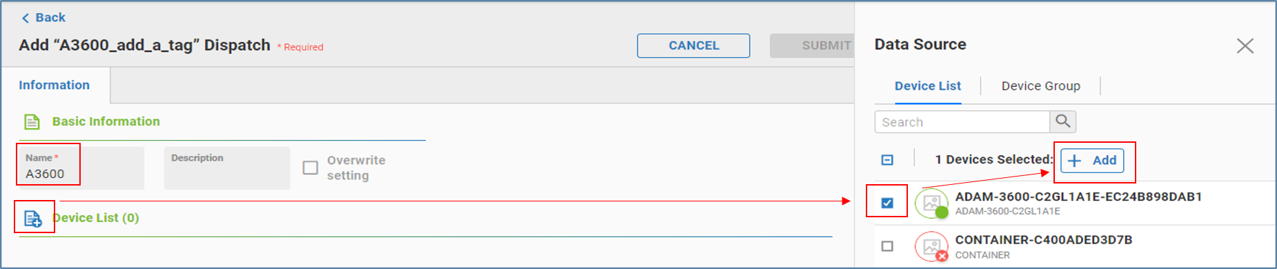 3. Add a Dispatch, enter a dispatch name, and select the corresponding device