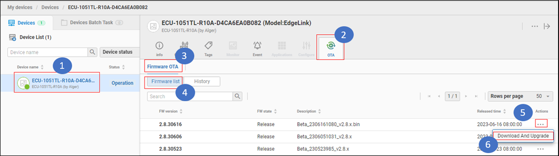 3. Click on "Firmware list" under "Firmware OTA" to view all files available for upgrade