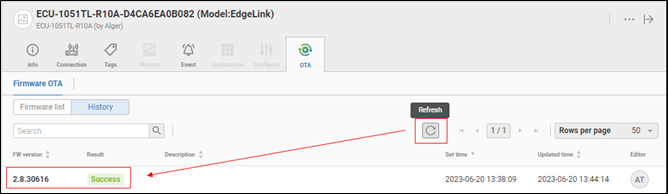 7. Click on the "Refresh" button to refresh the current upgrade status until you see "Success", which means the upgrade was successful