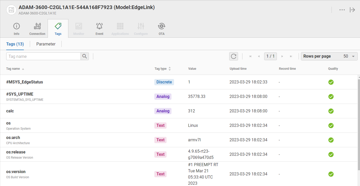 • Alias: Set the name when uploading data. Use the tag name as the data name when the alias is empty.