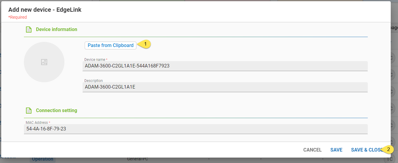 $\qquad$ 1. The prerequisite for establishing a connection between a gateway and EdgeSync 360/EdgeHub is to create a device in EdgeSync 360/EdgeHub and obtain a connection string