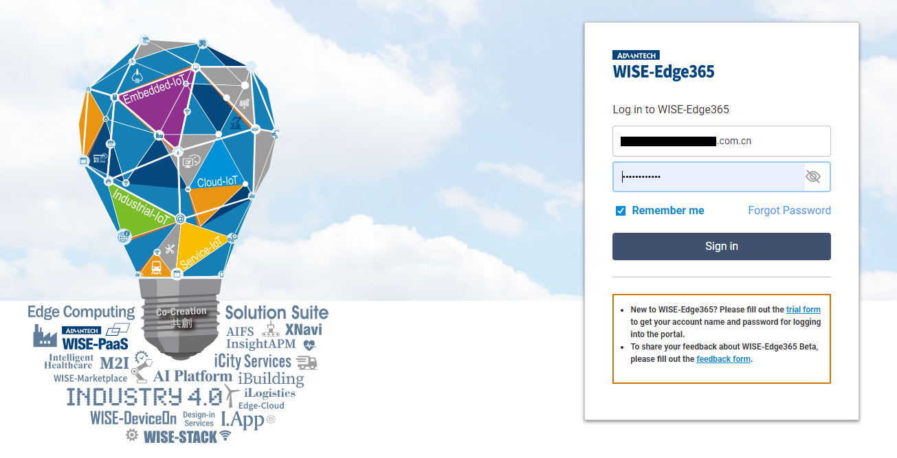 1. Open the EdgeSync 360/EdgeHub login page, enter your username and password to log in