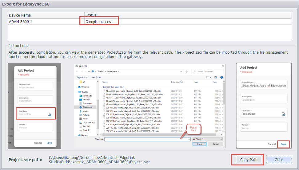 1. Uploading project files to EdgeSync 360/EdgeHub
