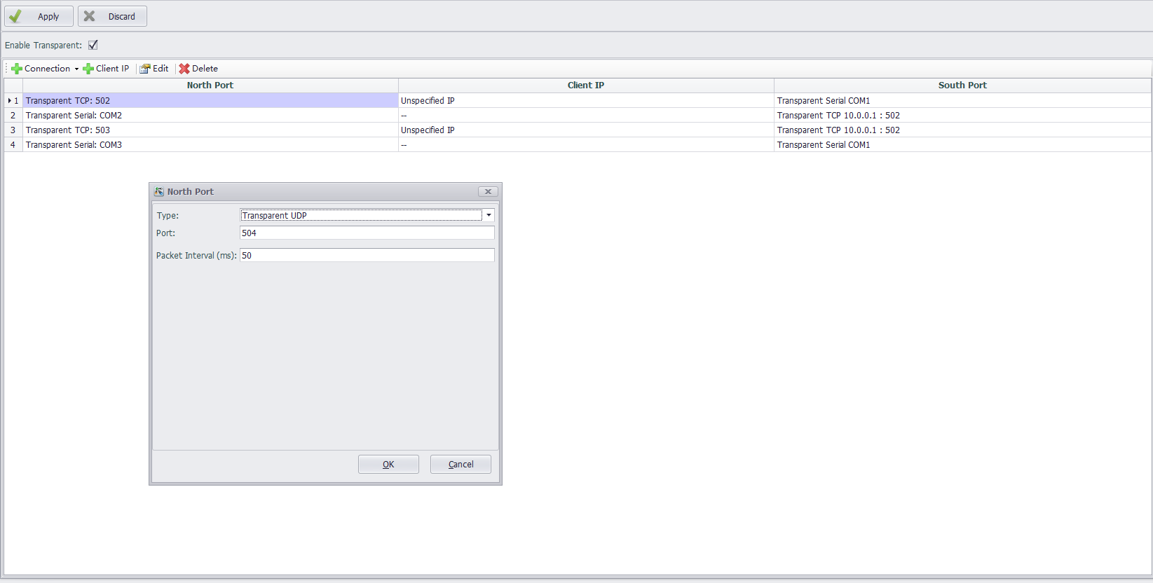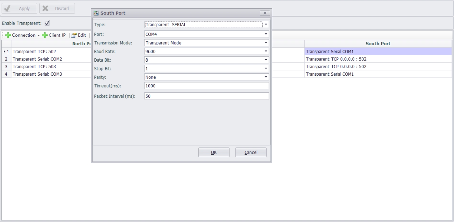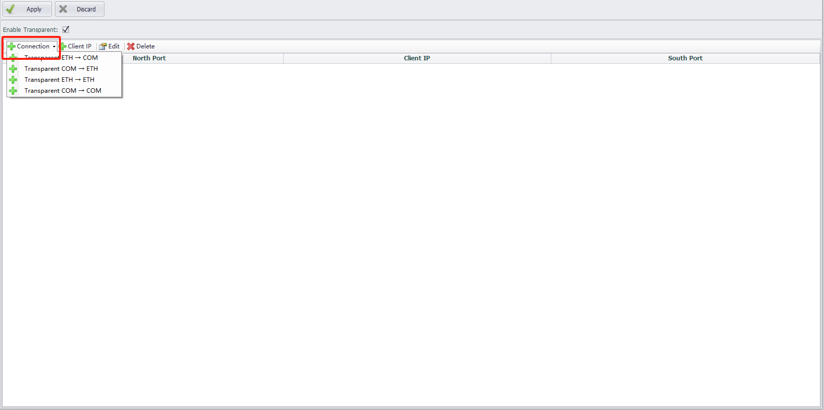 Note: When the northbound communication link is via network communication, Transparent Mode can only be enabled if either the maximum number of northbound TCP connections is 1, or the IP whitelist for northbound UDP/TCP is configured with a specific unique IP.