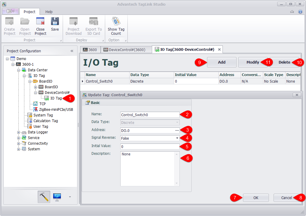 1. Double-click "IO Tag" in the left tree menu or right-click on it and select "Edit".