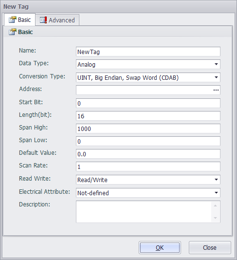 Click "OK" button to successfully add the tag. Then this new tag will appear in I/O Tag list.
