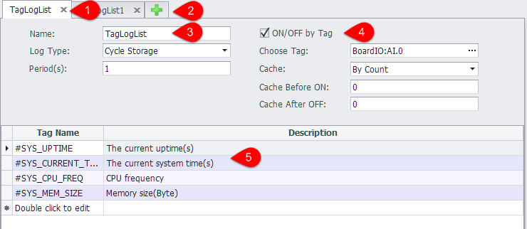 - Cache mode: when the control tag ON and OFF, it will cache a certain amount of data. In the cache mode, you can choose to cache log information by count or time.