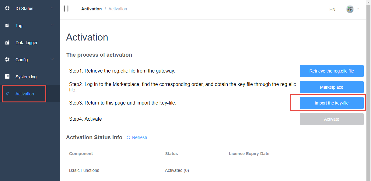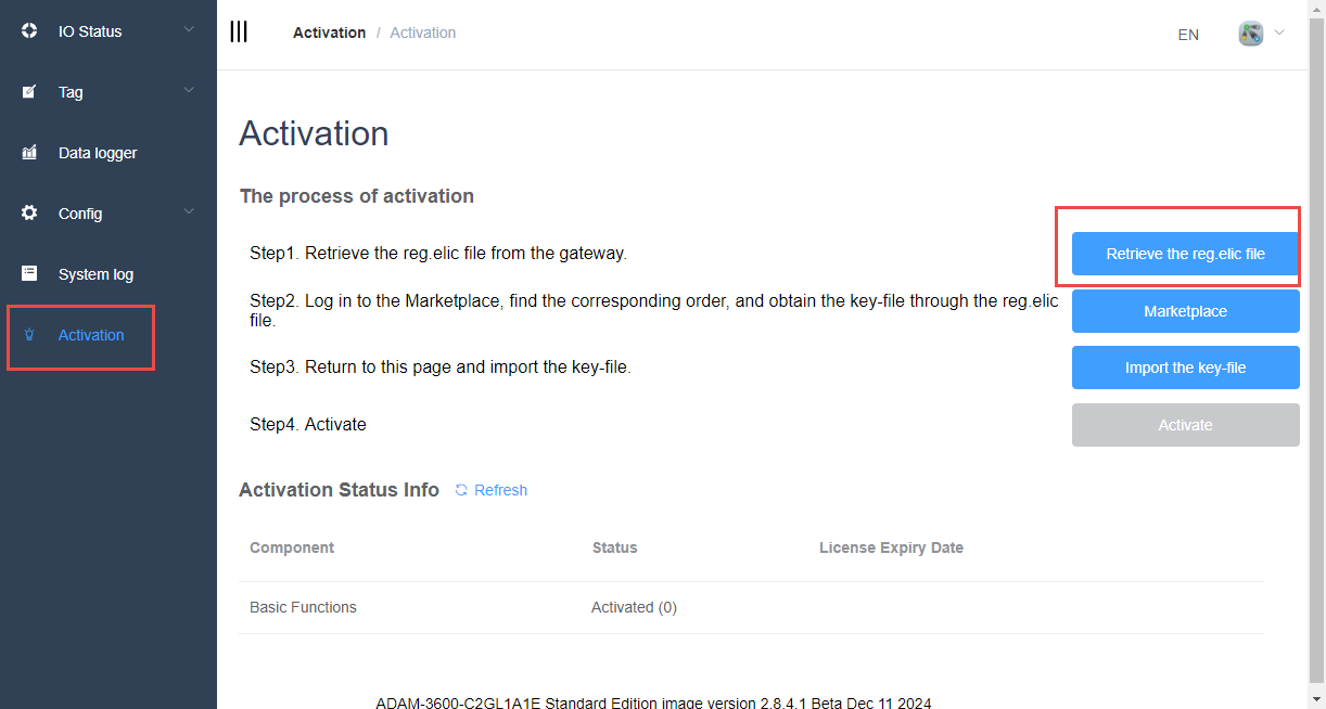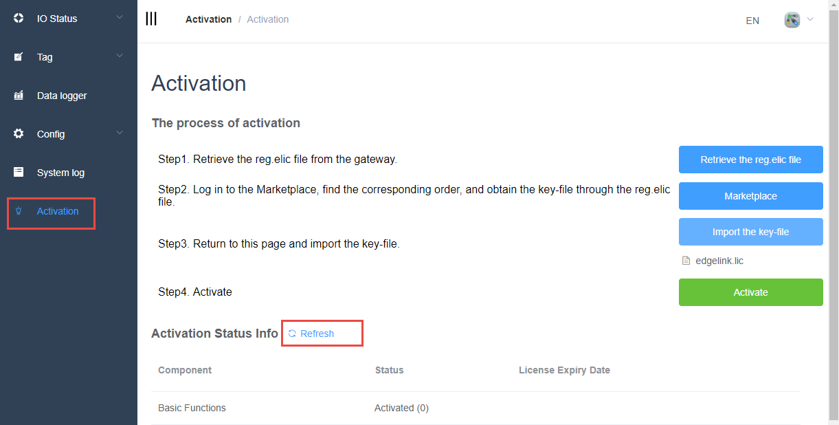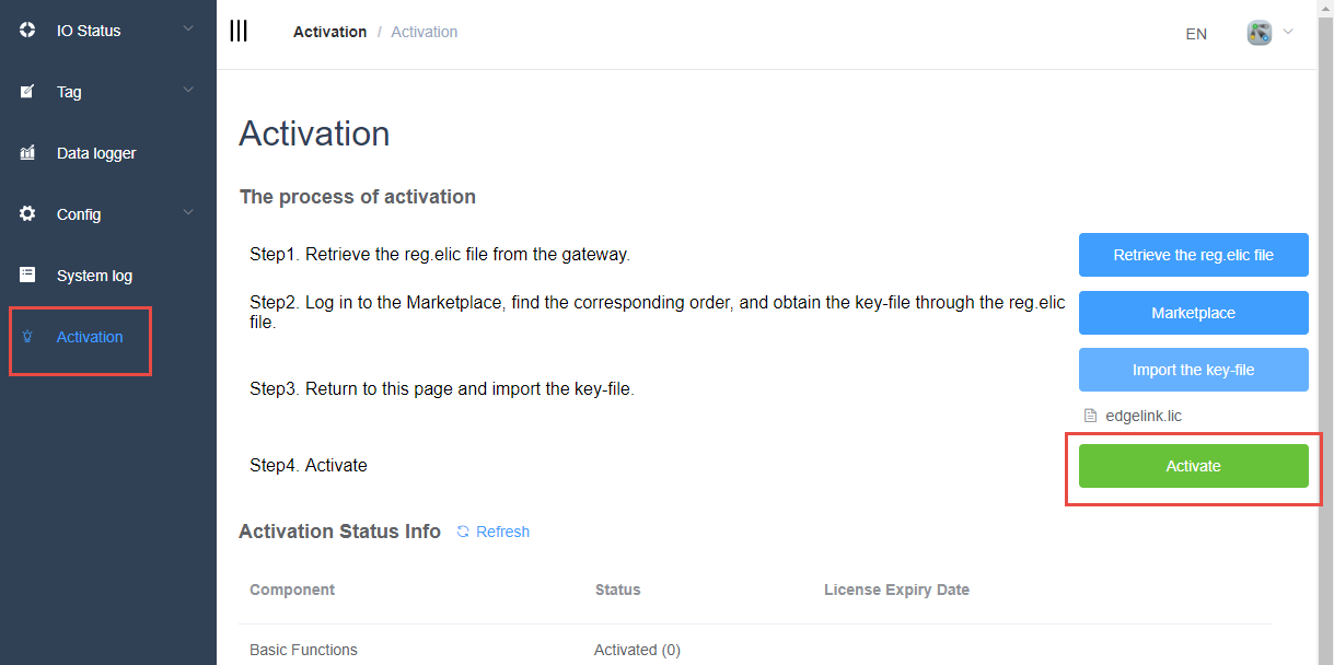 - Hardware purchased from Advantech with pre-installed EdgeLink Basic Functions (activated during production) does not require reactivation. Check the Activation Status Codes online.