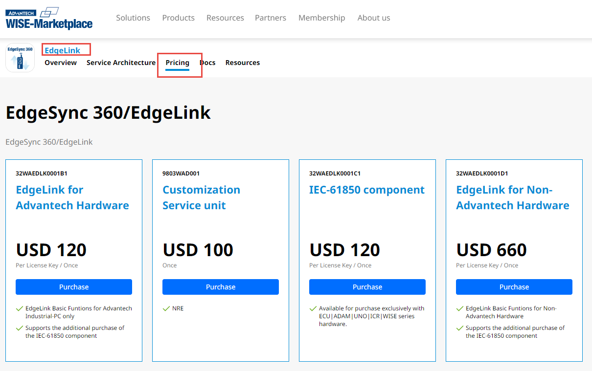 | 32WAEDLK0001C1 | IEC-61850 component | For Advantech factory-installed EdgeLink devices (e.g., ECU, ADAM, WISE, UNO, ICR) with only Basic Functions by default. Requires separate purchase of IEC-61850 service. |
