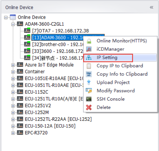 1. Right-click on the online device that has been searched, click Set IP, and open the "Set IP" pop-up box.