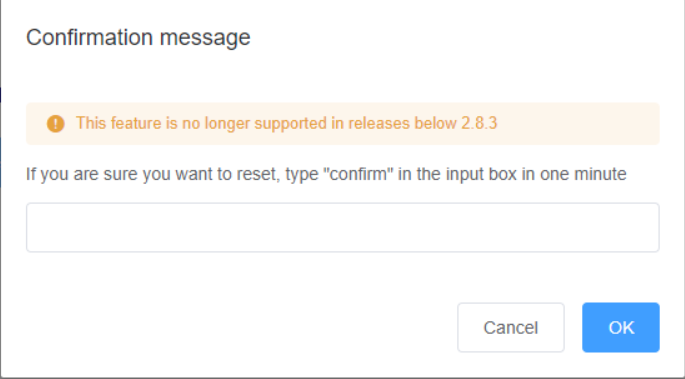 This function clears the configuration that the user has already made, so the permissions are high and a second confirmation is required.