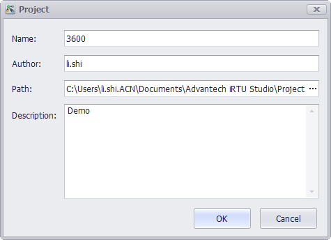 Click "Create Project" under "Project" tab to pop up the below window. Then enter a name, path and description, and click "OK" button.