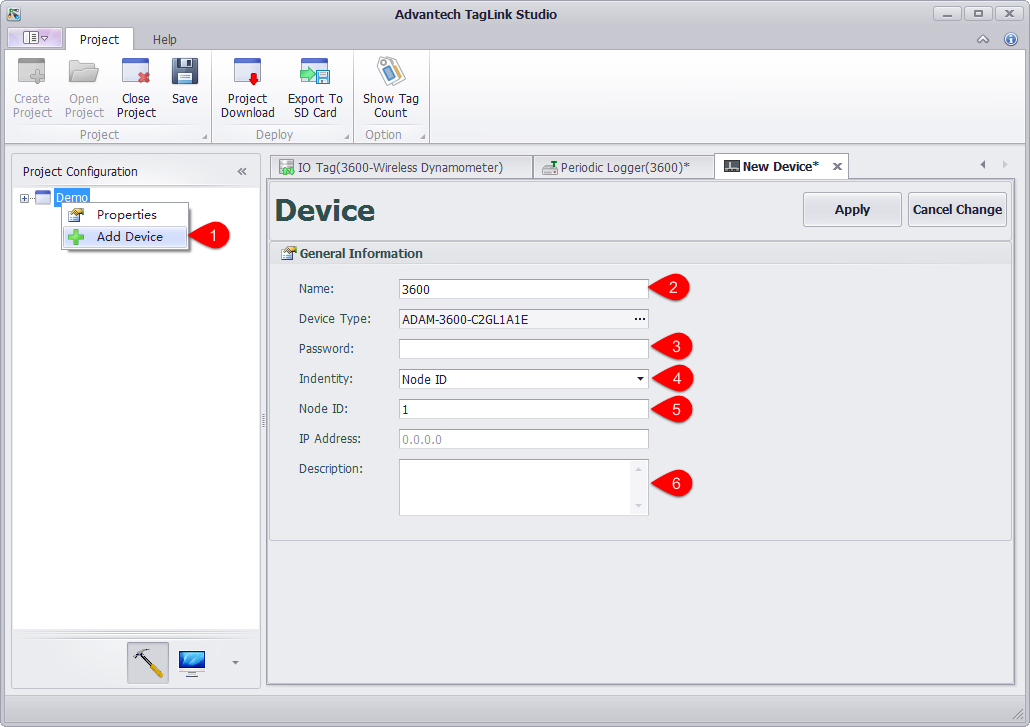 1. Right-click on the project name to add a device.