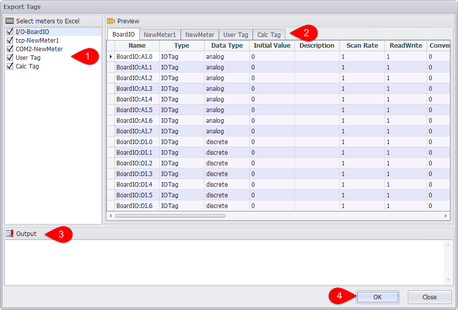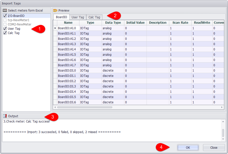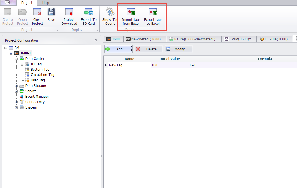 EdgeLink Studio supports bulk importing and exporting the IO tags, calculation tags and user tags of a device in Excel format.