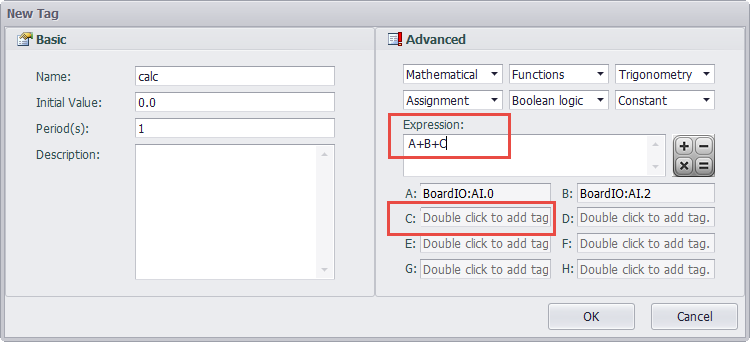 You can see that the formula in the Excel table is "A+B+C", and the variable ParametersC is empty, that is, the Tag corresponding to the variable "C" is not correctly defined in the formula.