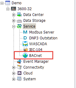 - Double-click "BACnet Server" under "Service" item in the left menu tree to pop up the configuration interface.
