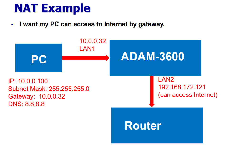 When using the device as a gateway, the NAT function is enabled to allow devices connected to the network card from the internal network to access the external network through the gateway.